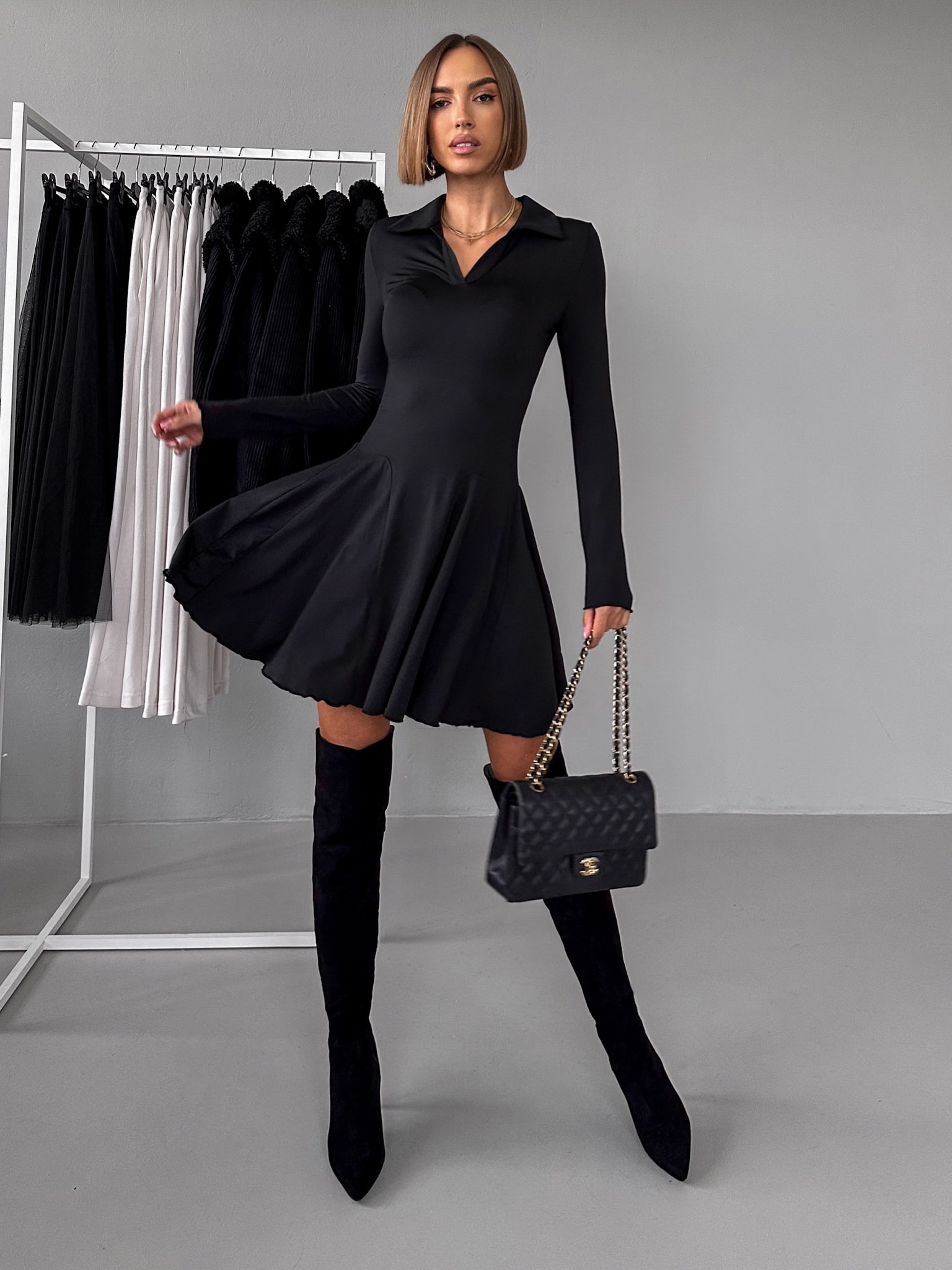 Černé krátké polo šaty HILMAT s dlouhým rukávem Velikost: M/L
