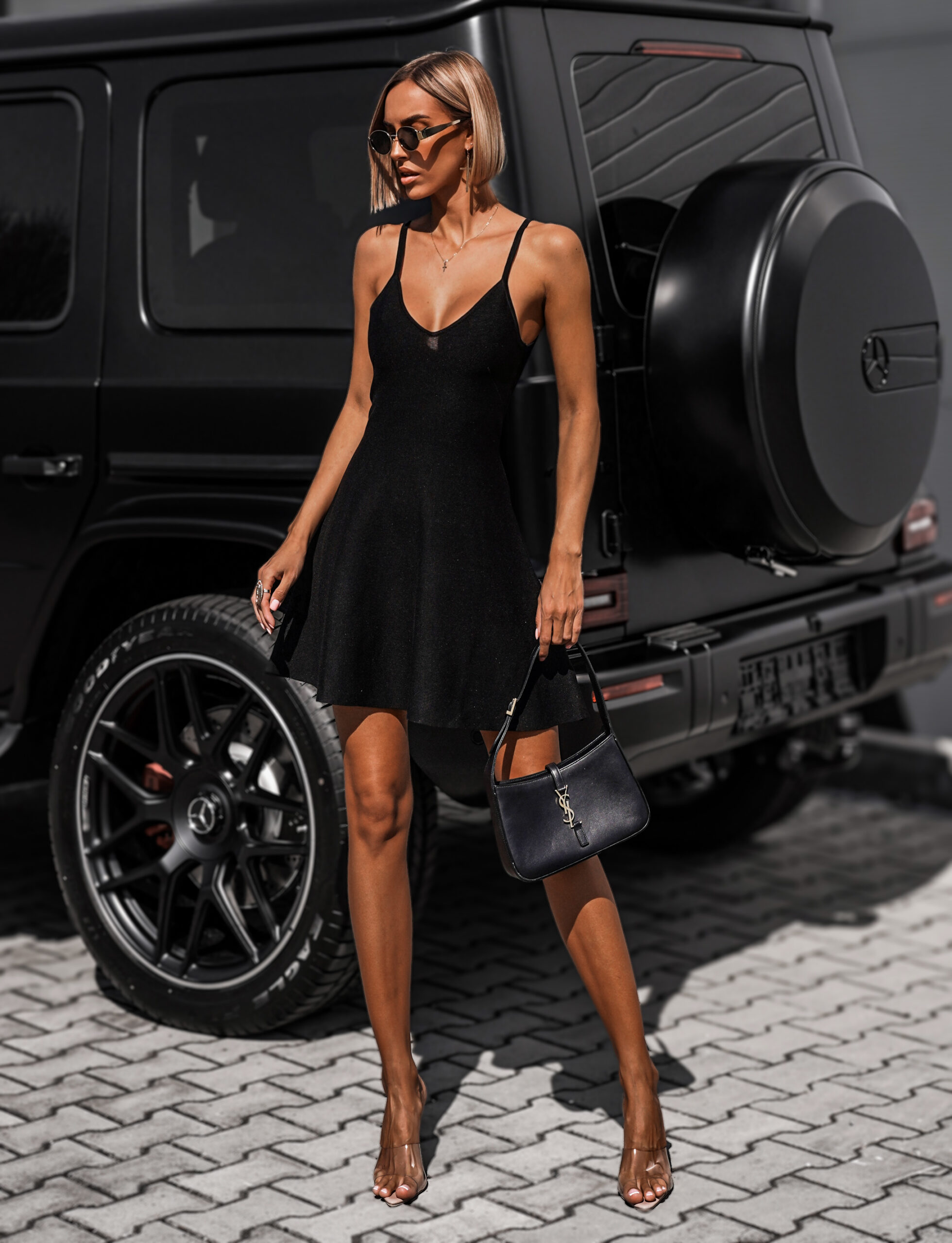 Černé letní áčkové šaty PERTHY na ramínka Velikost: S/M