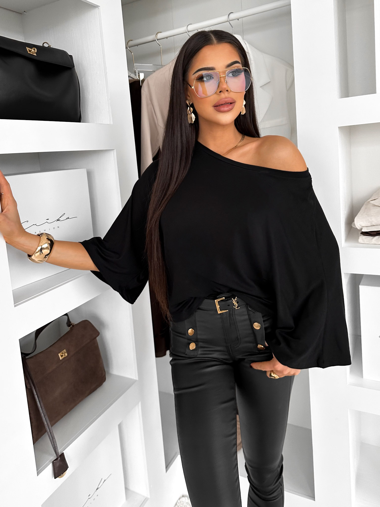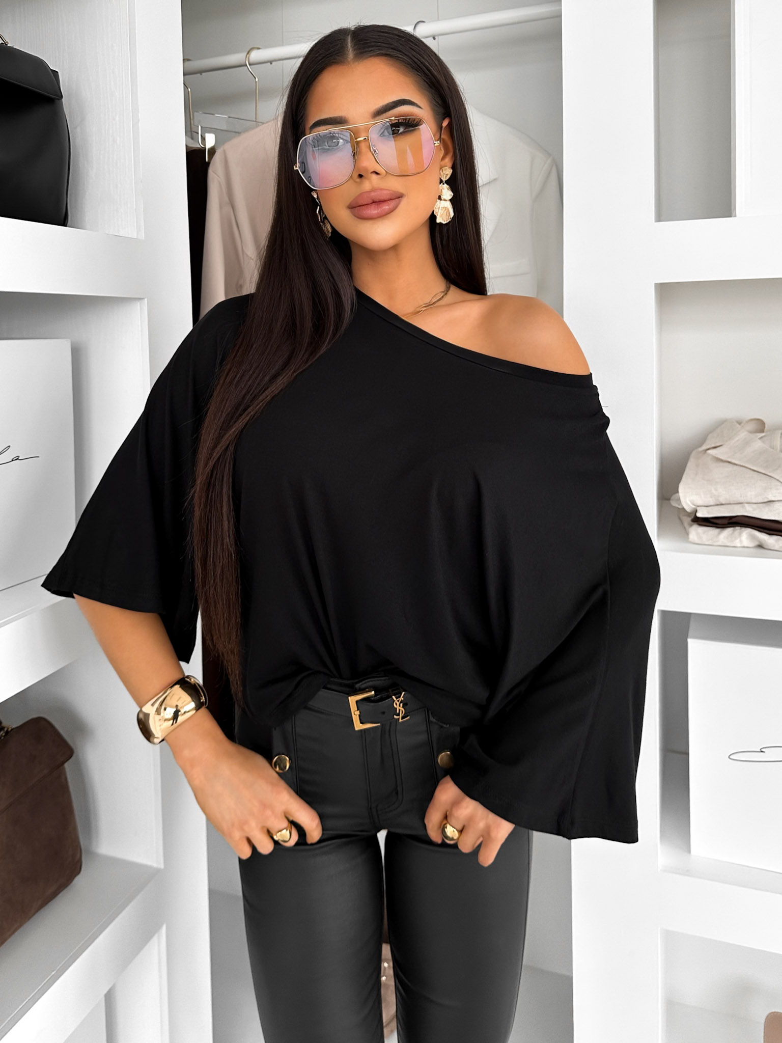 Černé oversize triko BRISK s 3/4 rukávem Velikost: ONESIZE