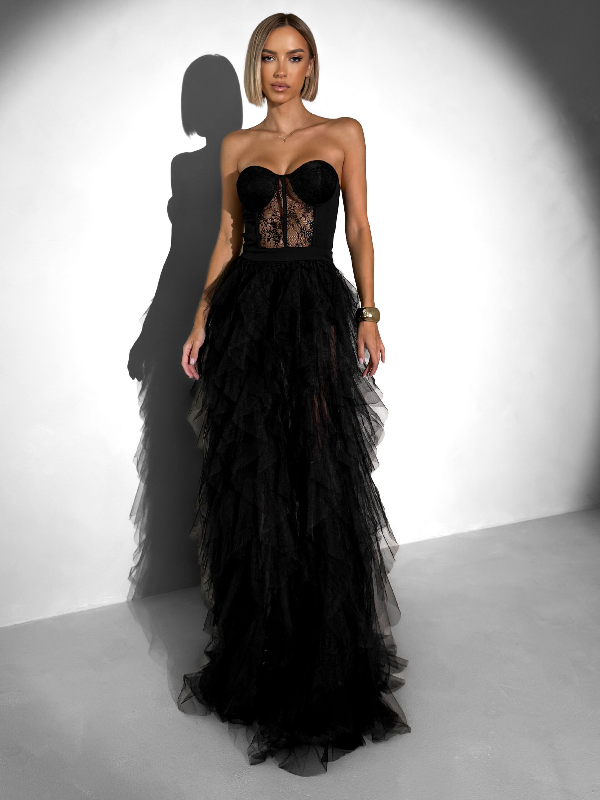 Černé plesové tylové šaty FERELIX s korzetem Velikost: S