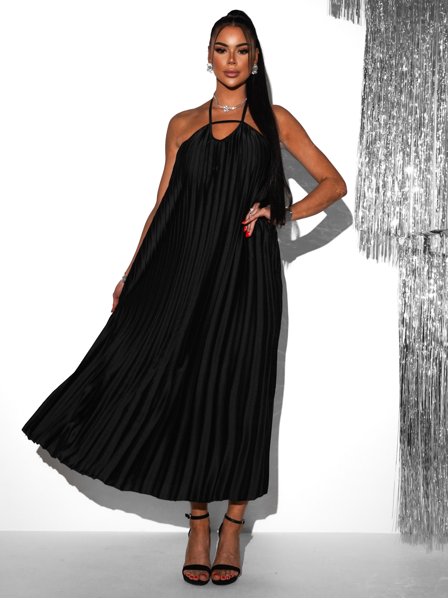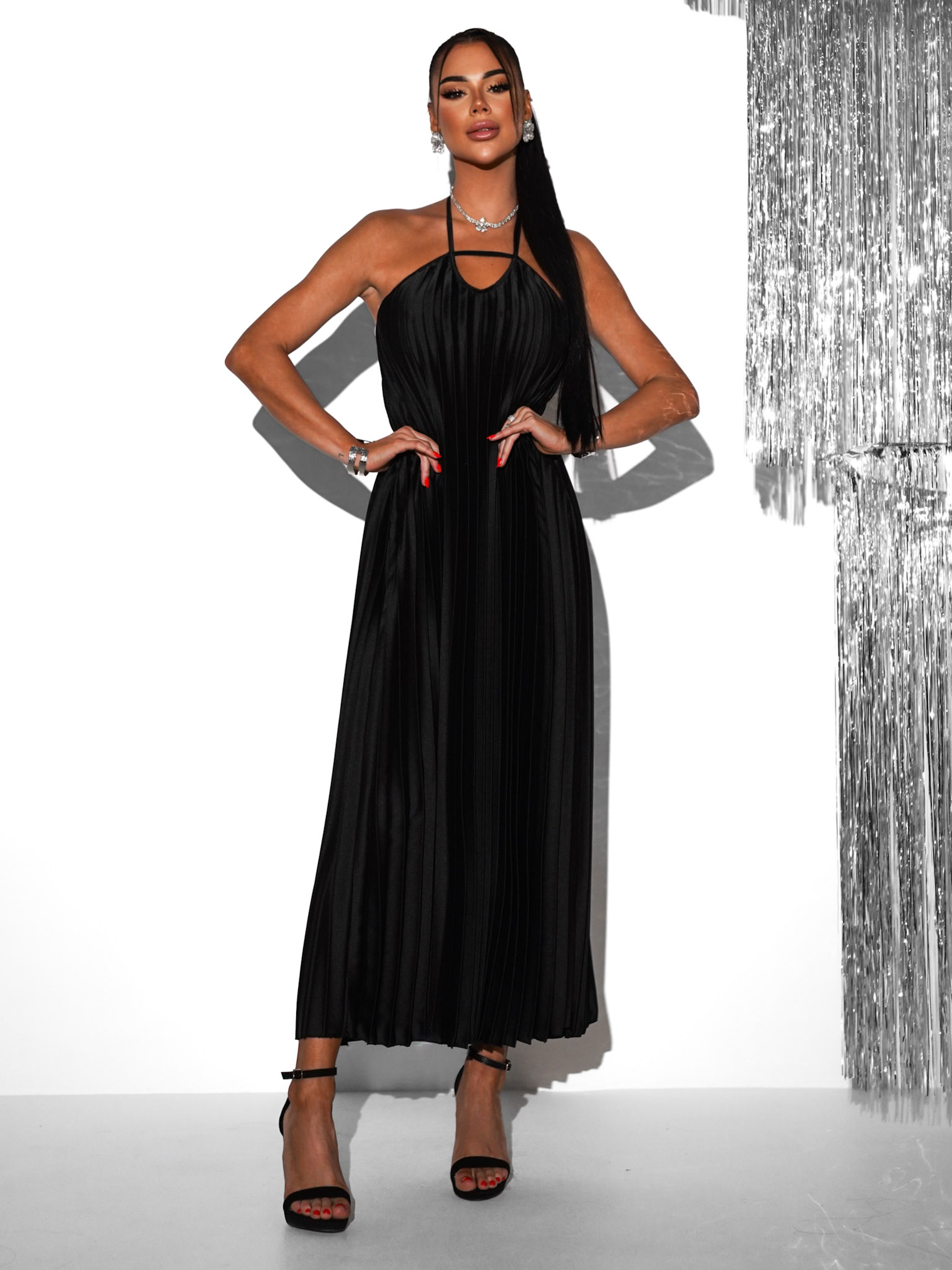 Černé plisované dlouhé elegantní šaty AUSTERE Velikost: ONESIZE