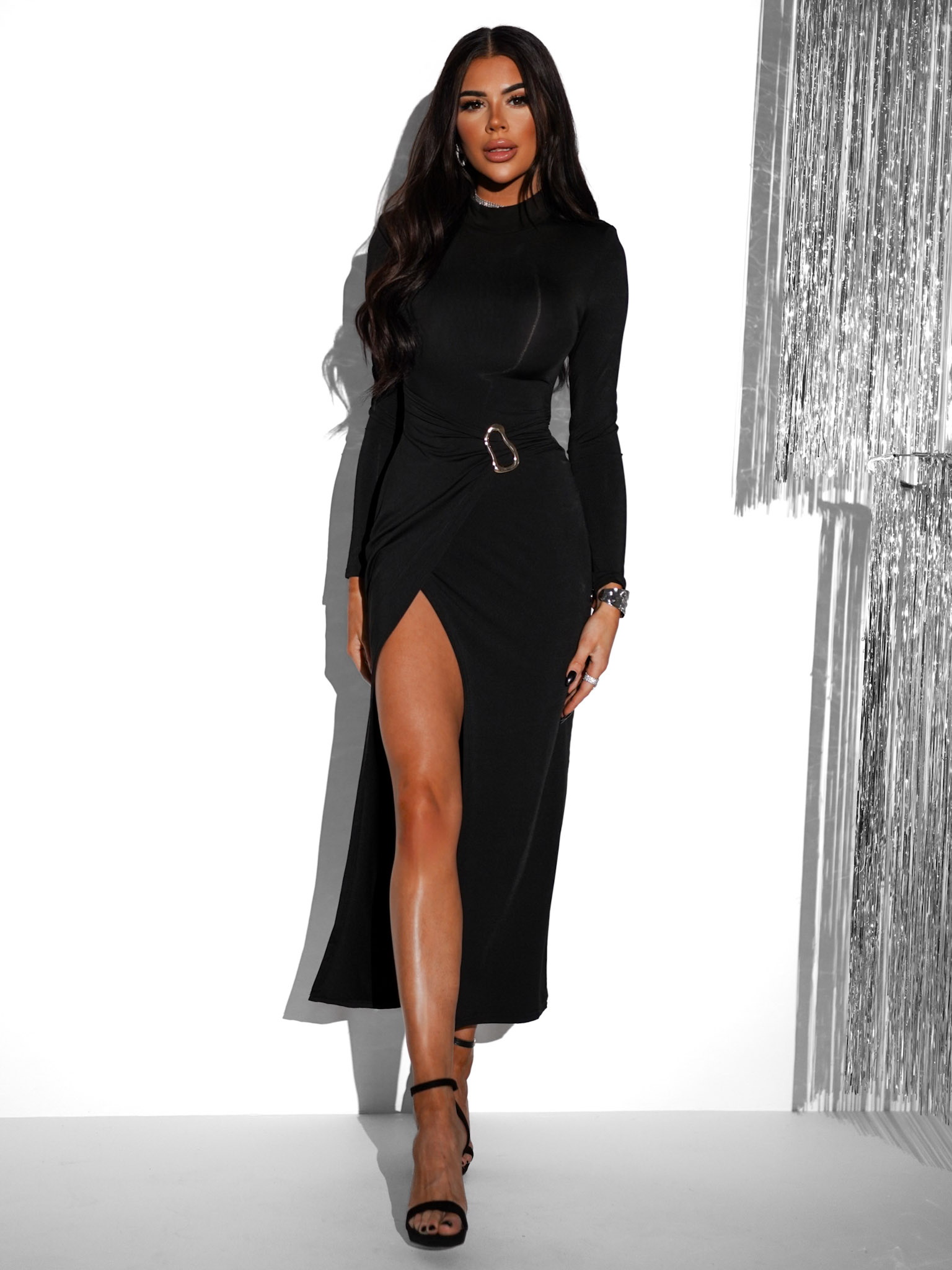 Černé společenské dlouhé šaty KAJSA se sponou Velikost: S/M