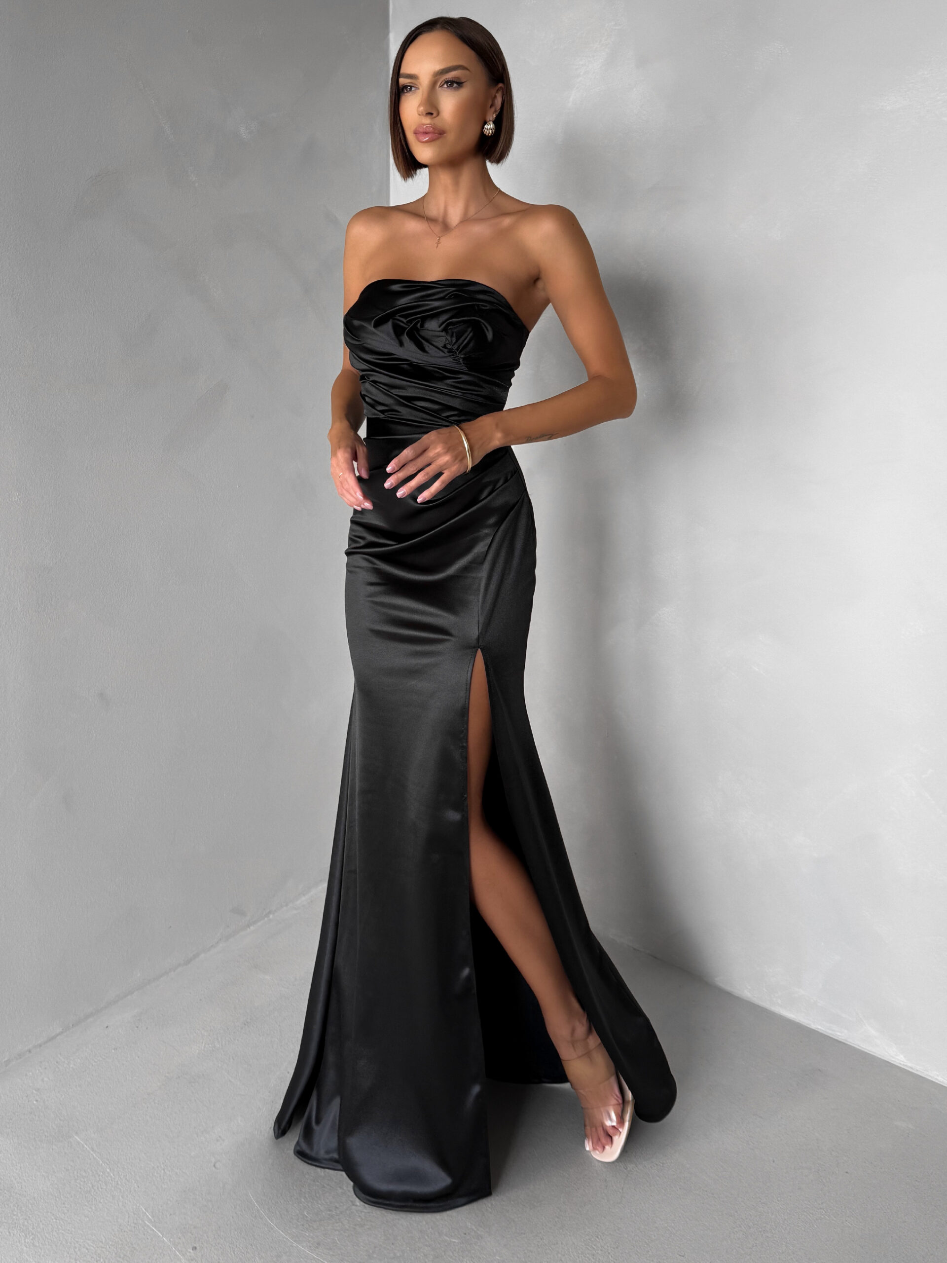 Černé společenské saténové korzetové dlouhé šaty ZONTIRE Velikost: ONESIZE