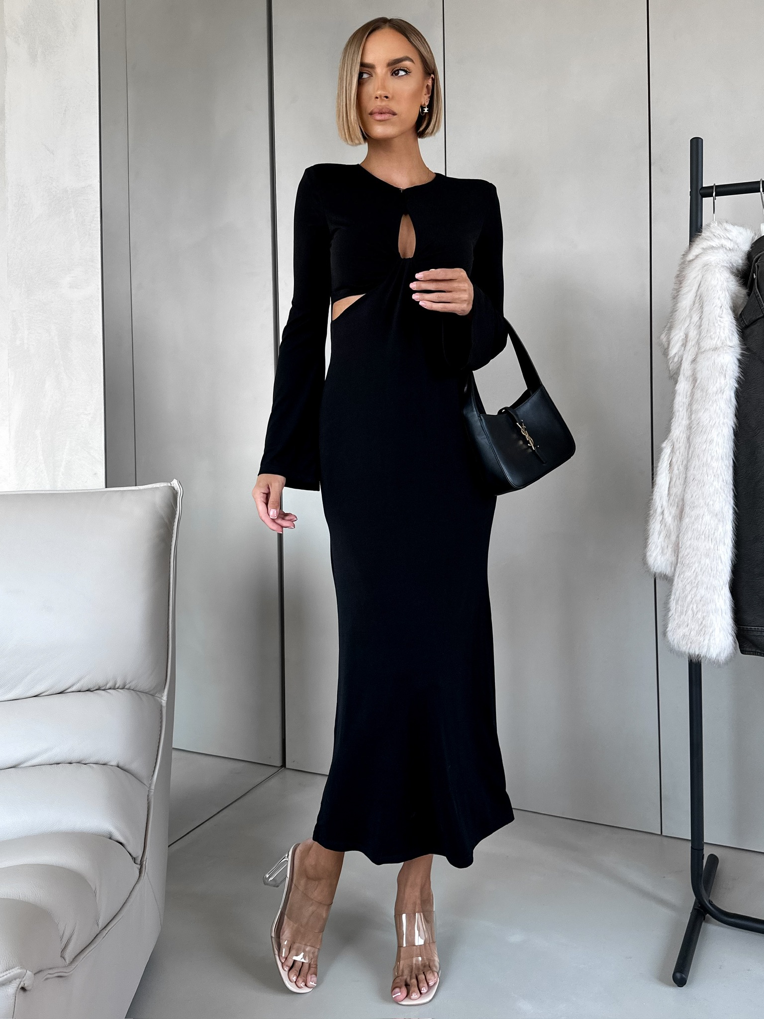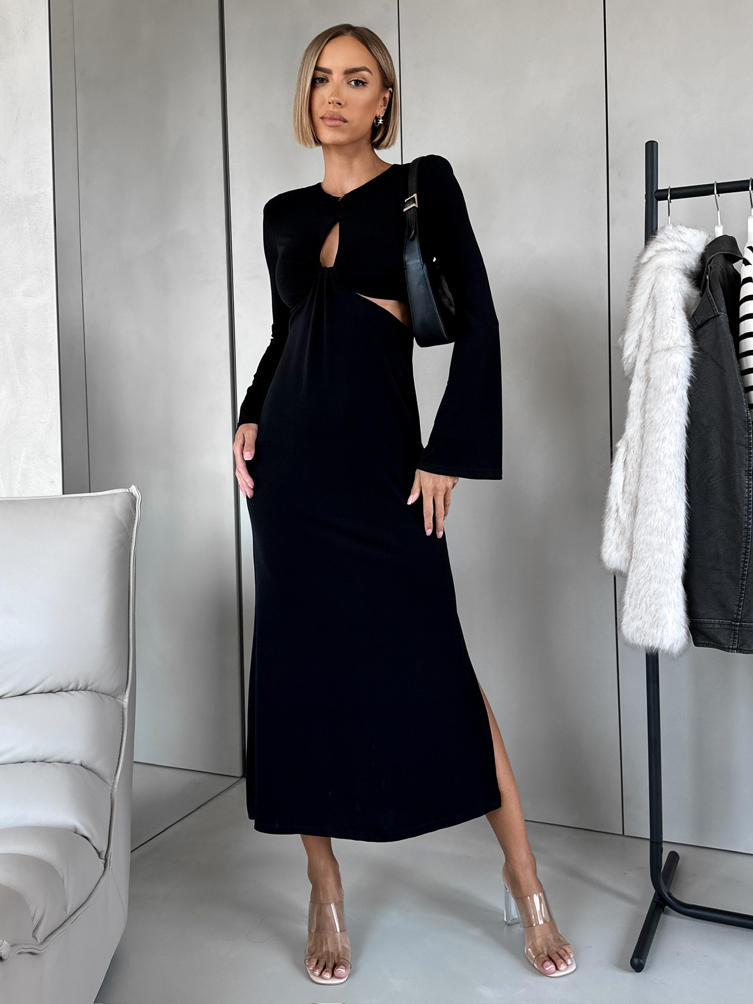 Černé společenské šaty AMYNYT s průstřihy Velikost: ONESIZE