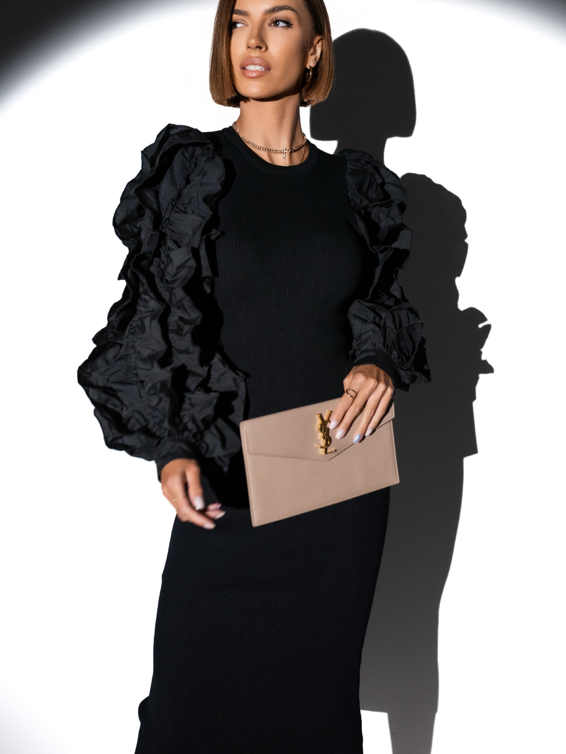 Černé stylové šaty RACHEL s volánkovými rukávy Velikost: ONESIZE
