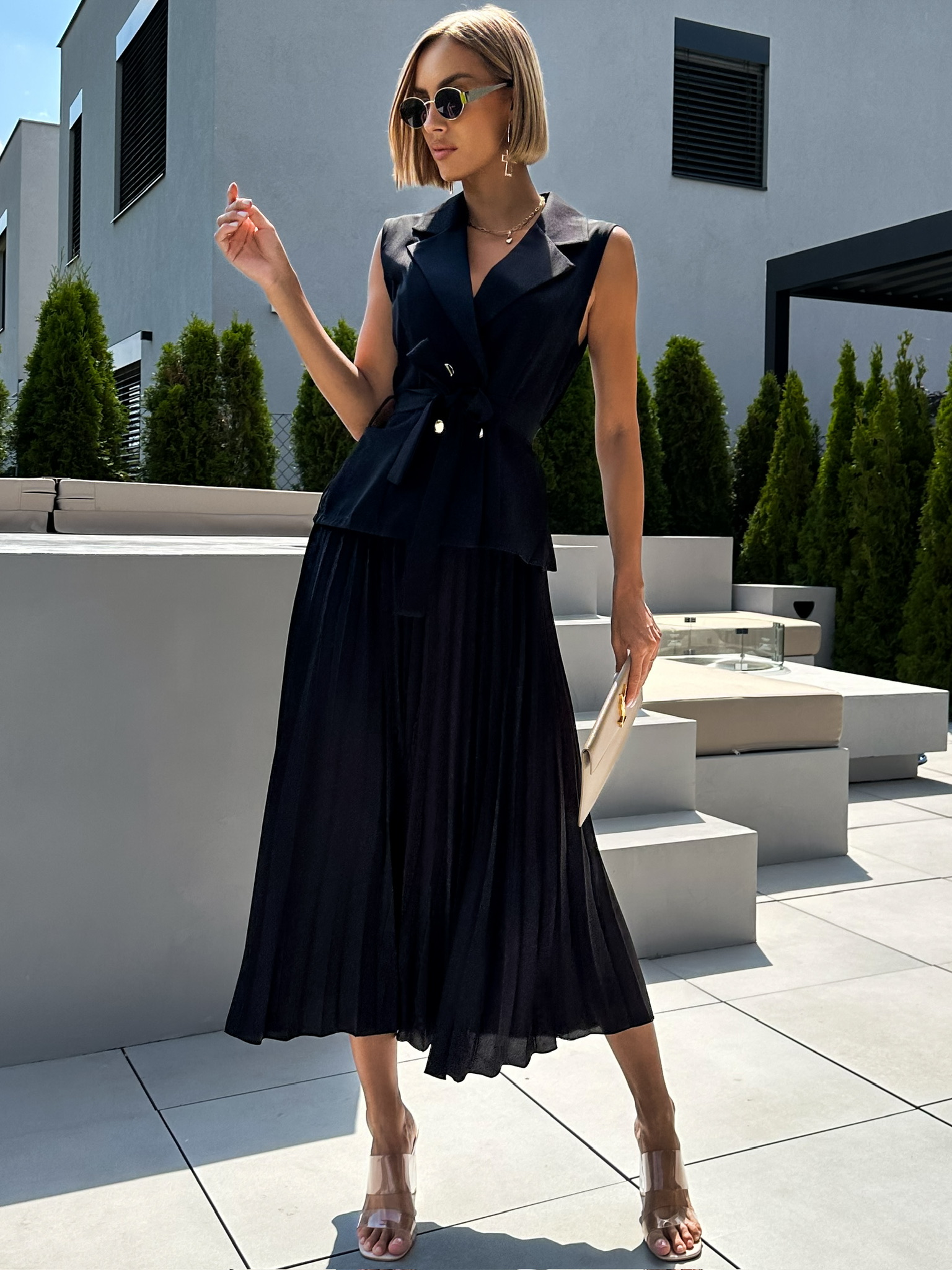 Černé stylove šaty SYNGAPOR s plisovanou sukní Velikost: ONESIZE