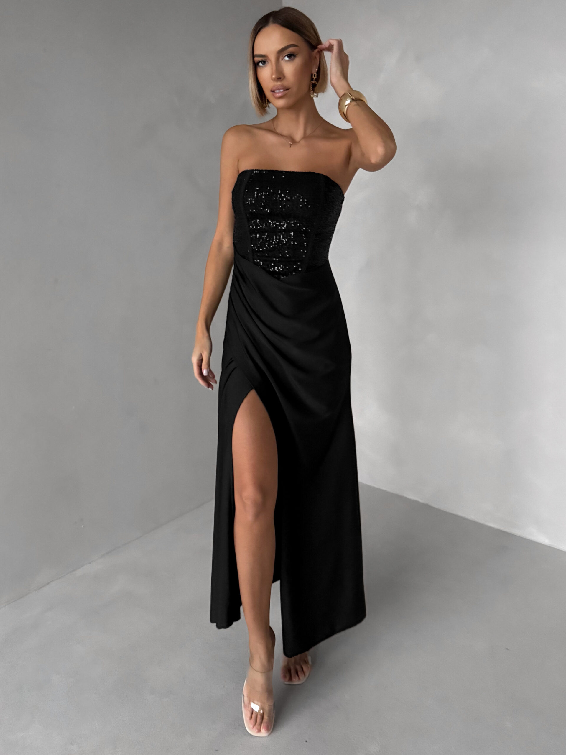 Černé třpytivé společenské dlouhé šaty AVENZA s rozparkem Velikost: ONESIZE