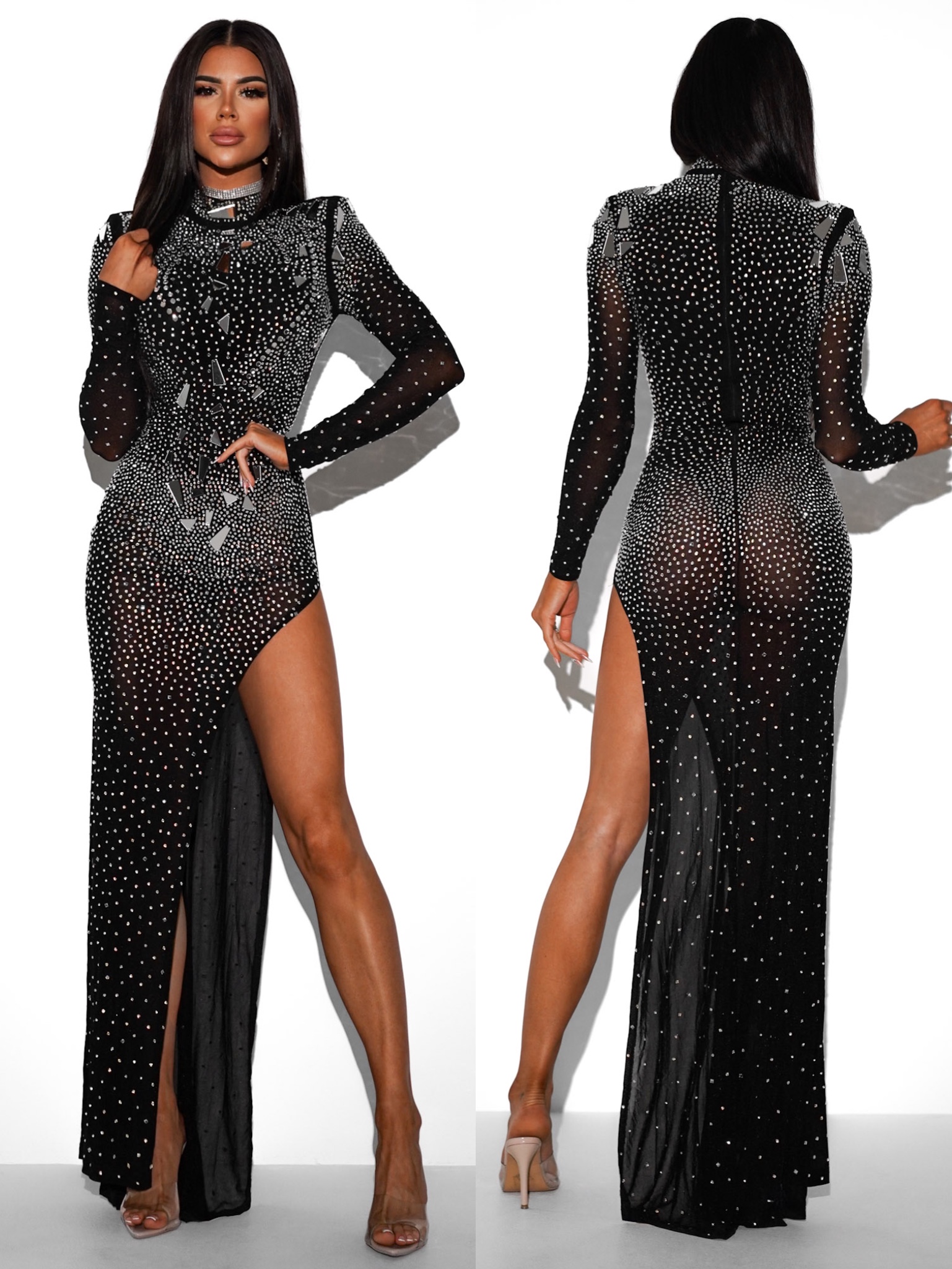 Černé třpytivé večerní šaty LYSON s rozparkem Velikost: M
