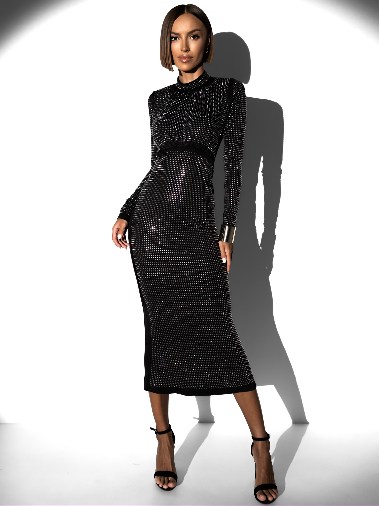 Černé třpytivé večerní šaty ZURINA s kamínky Velikost: M/L