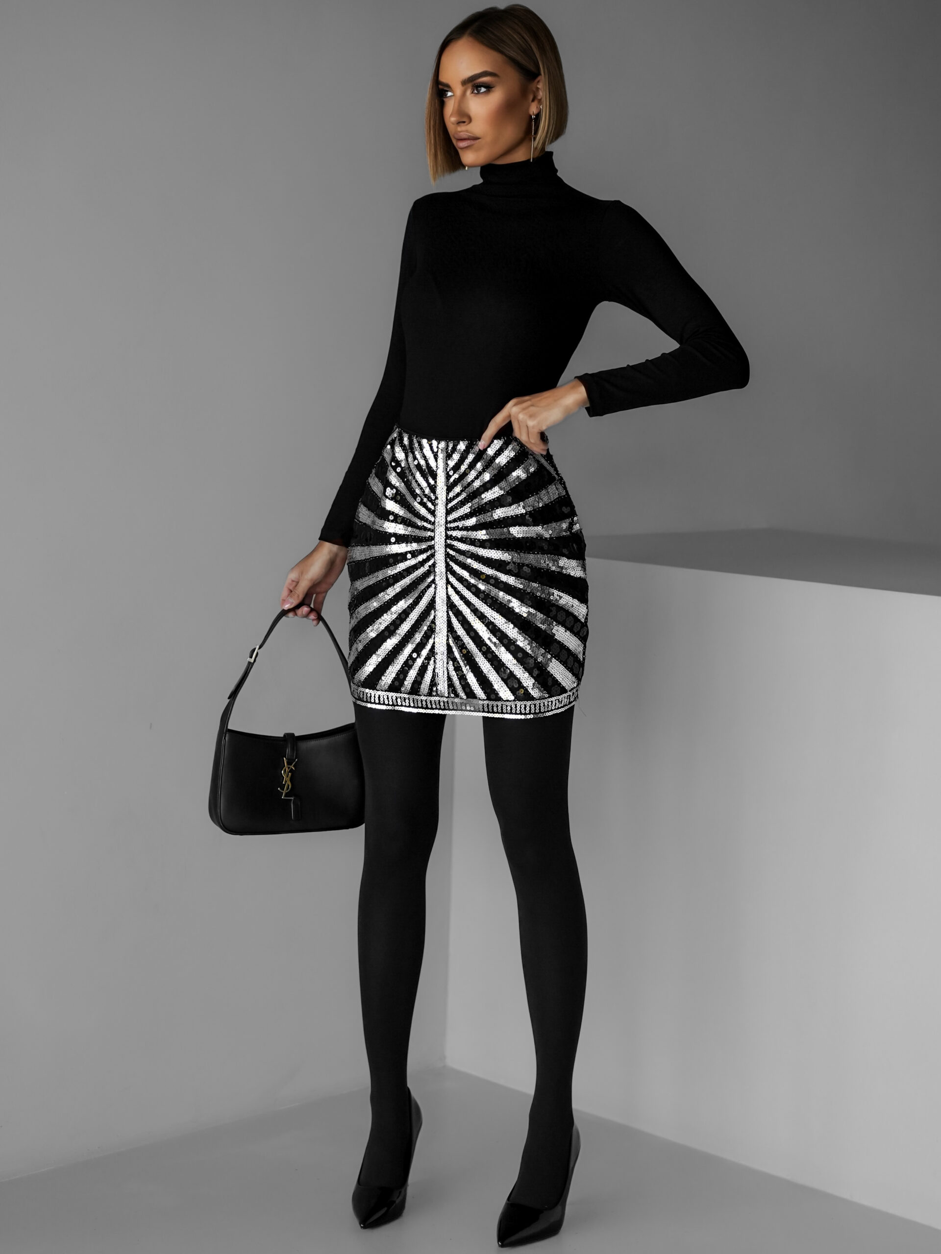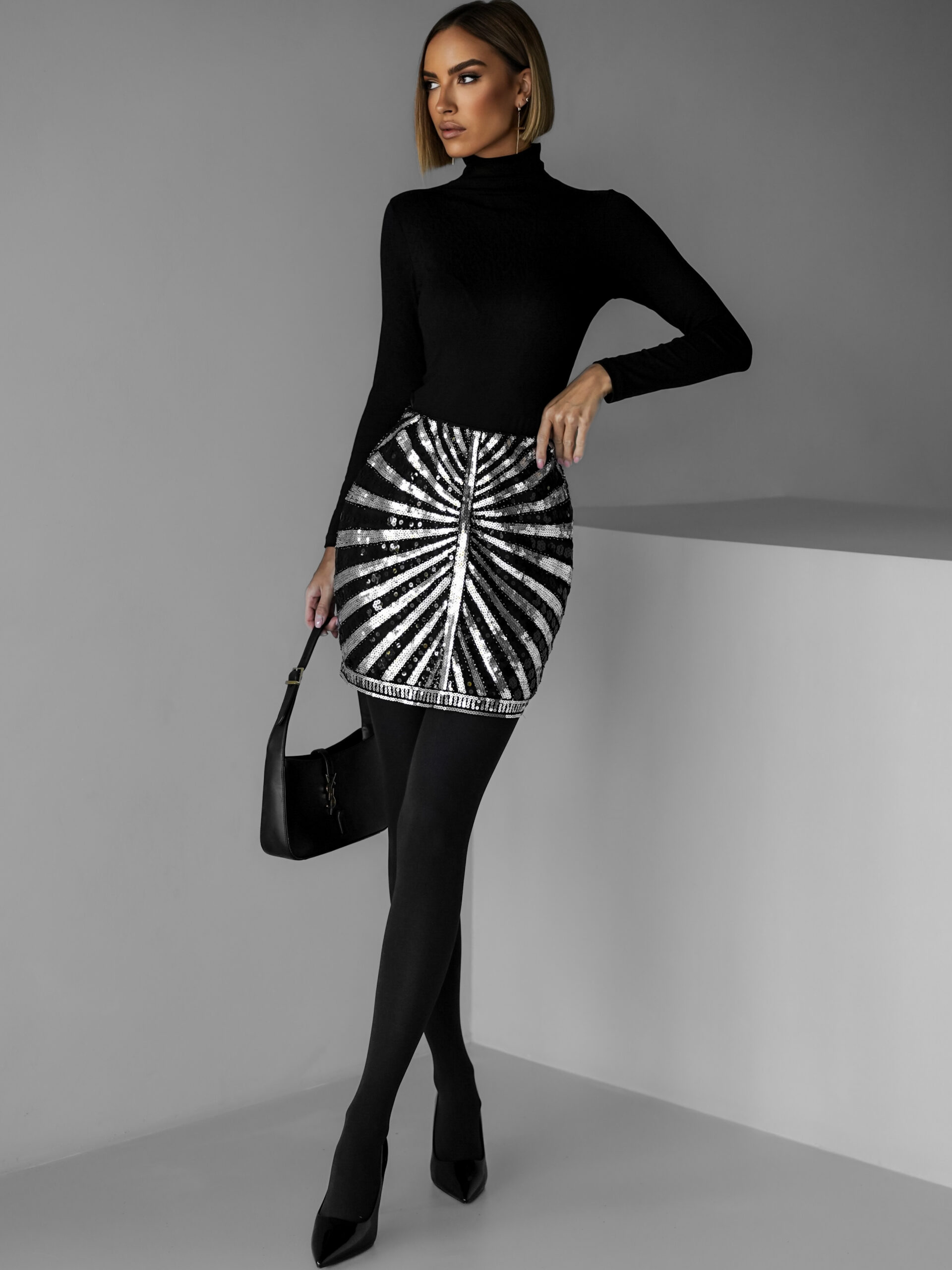 Černostříbrná flitrovaná sukně MALIN Velikost: M/L