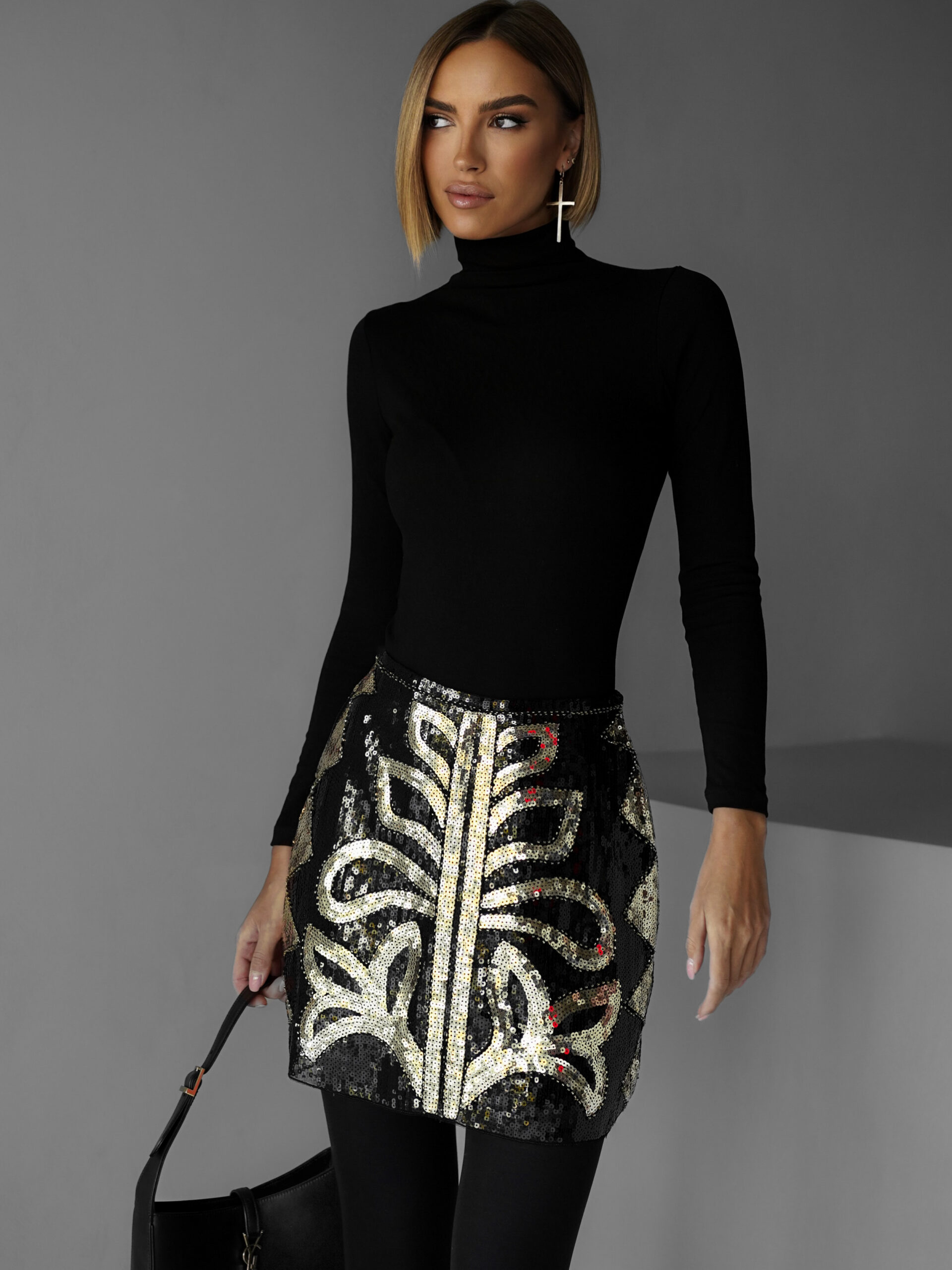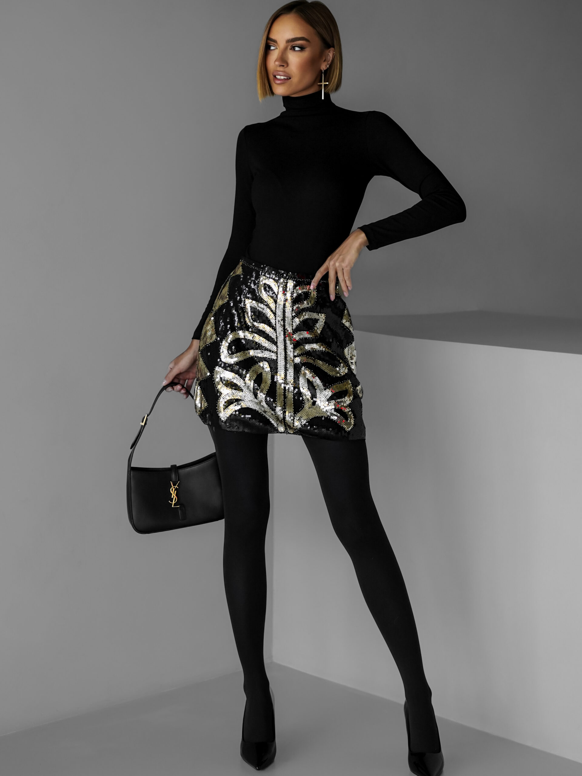 Černozlatá flitrovaná mini sukně SIGGO Velikost: ONESIZE