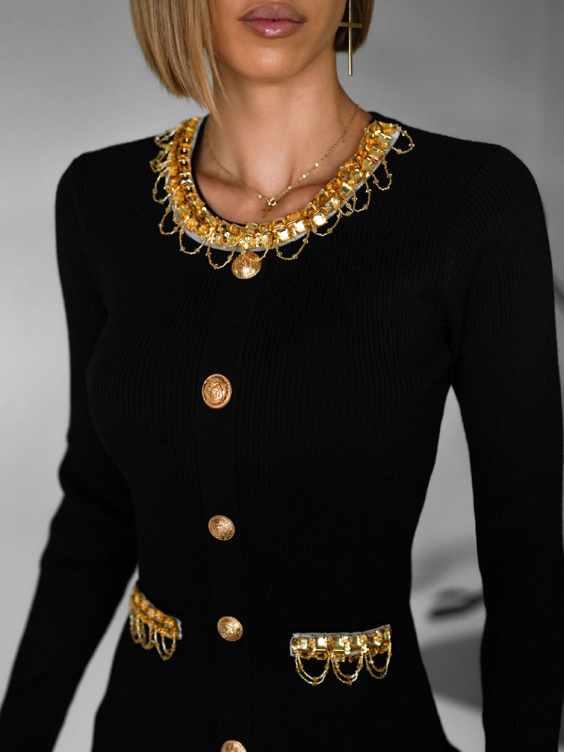 Černozlaté žerzejové šaty ENRICA Velikost: S/M