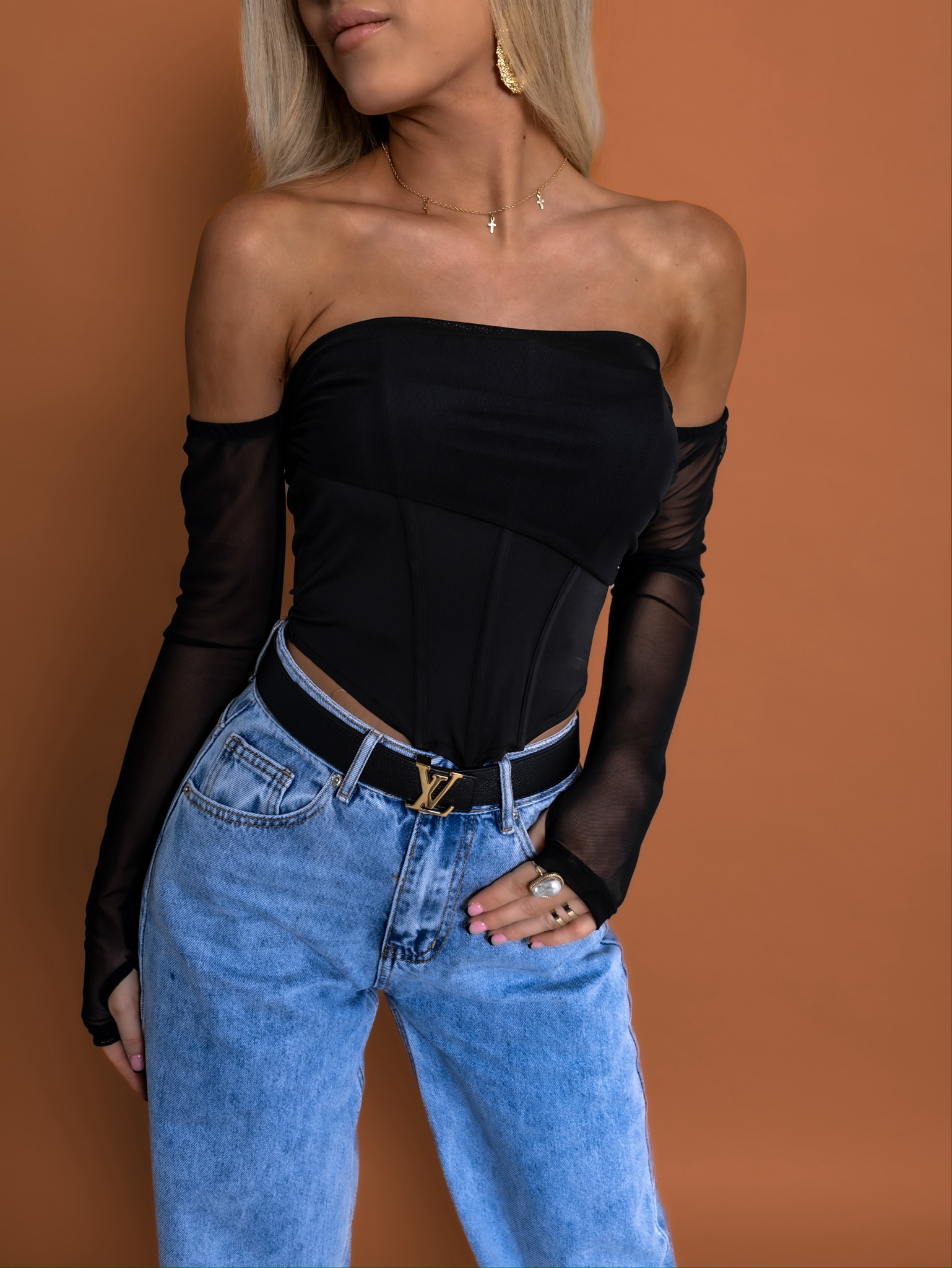 Černý elegantní crop top MIJAEL Velikost: M/L