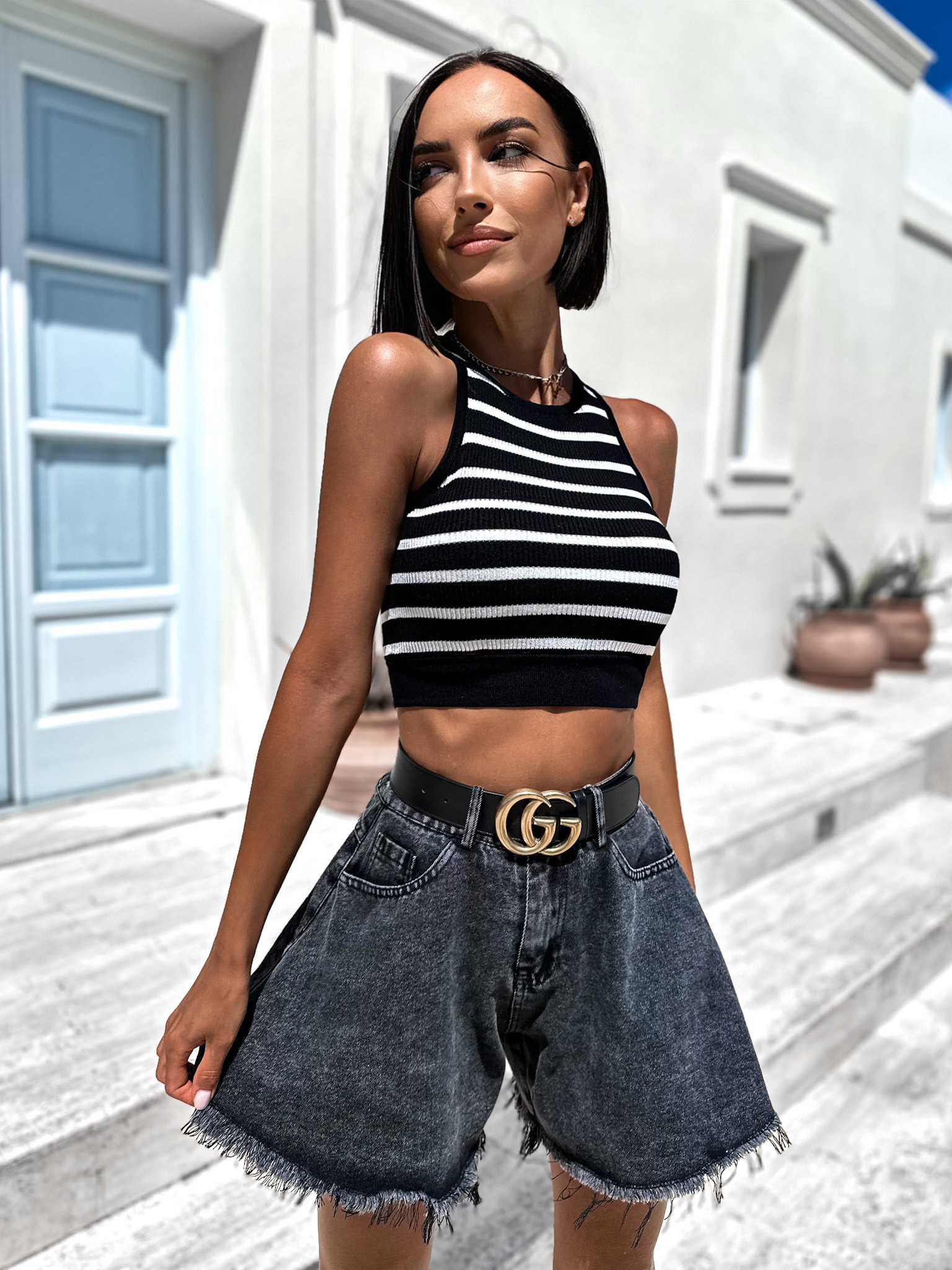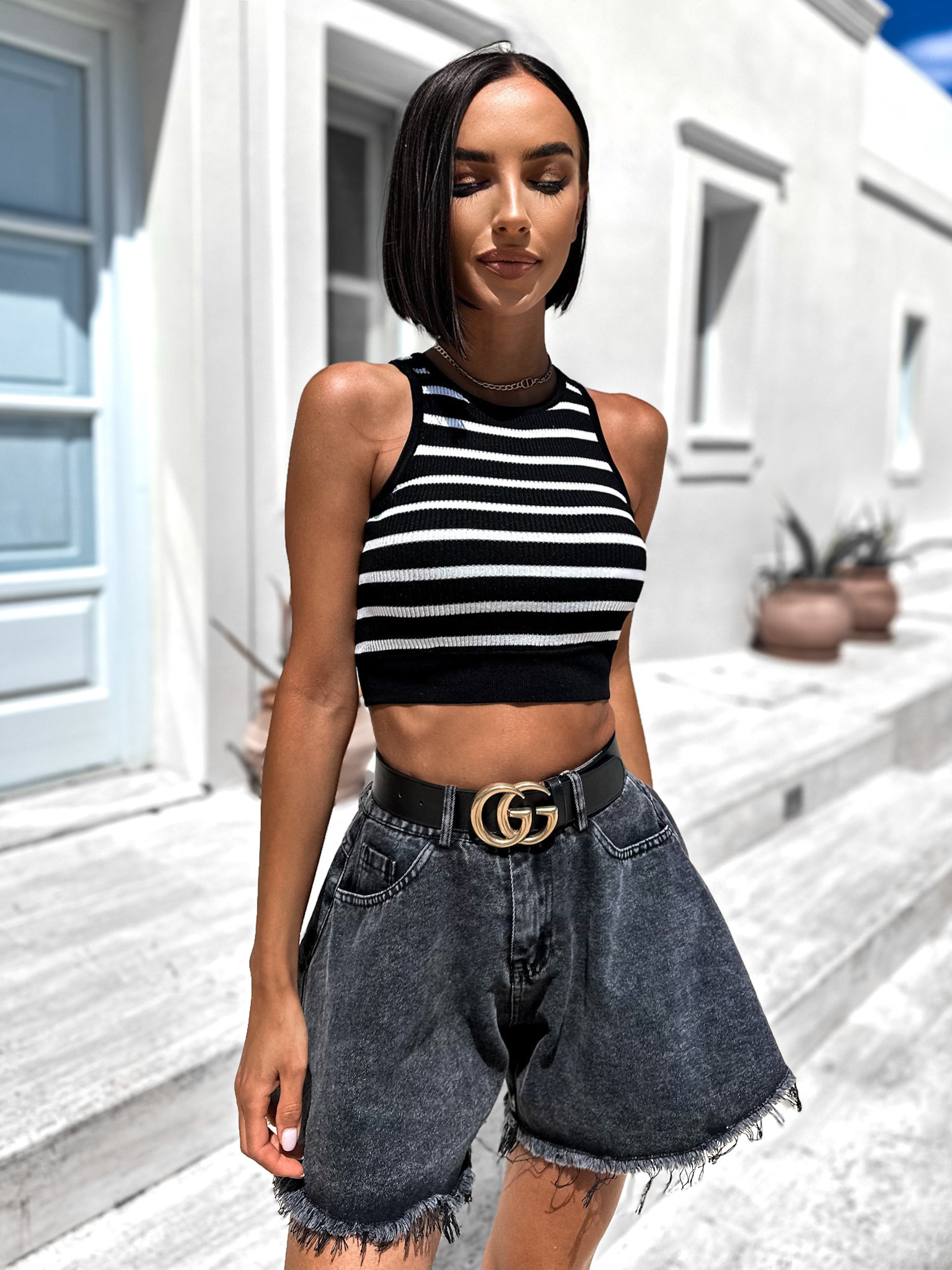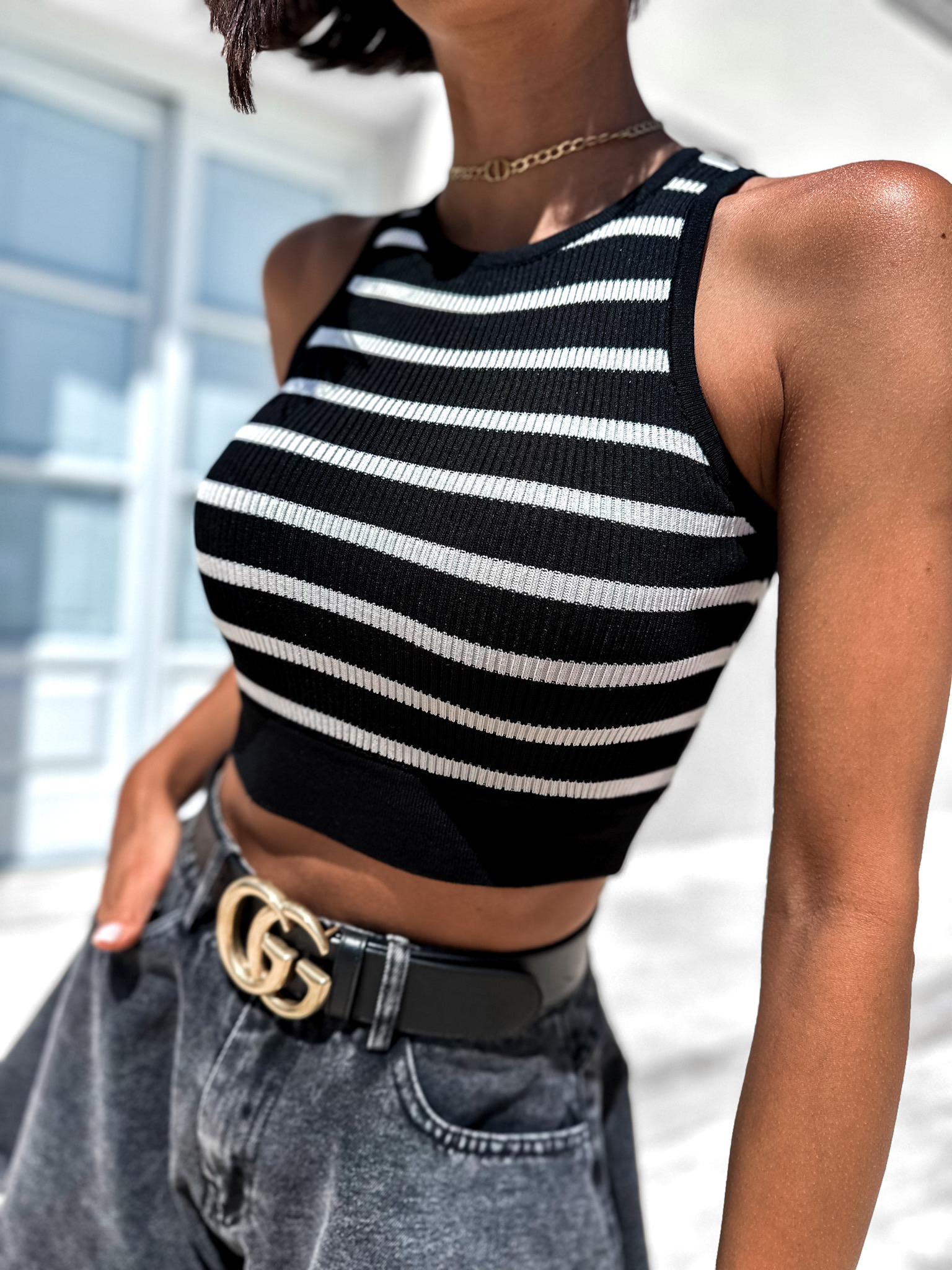 Černý elegantní top ALAWOSI s pruhy Velikost: M/L