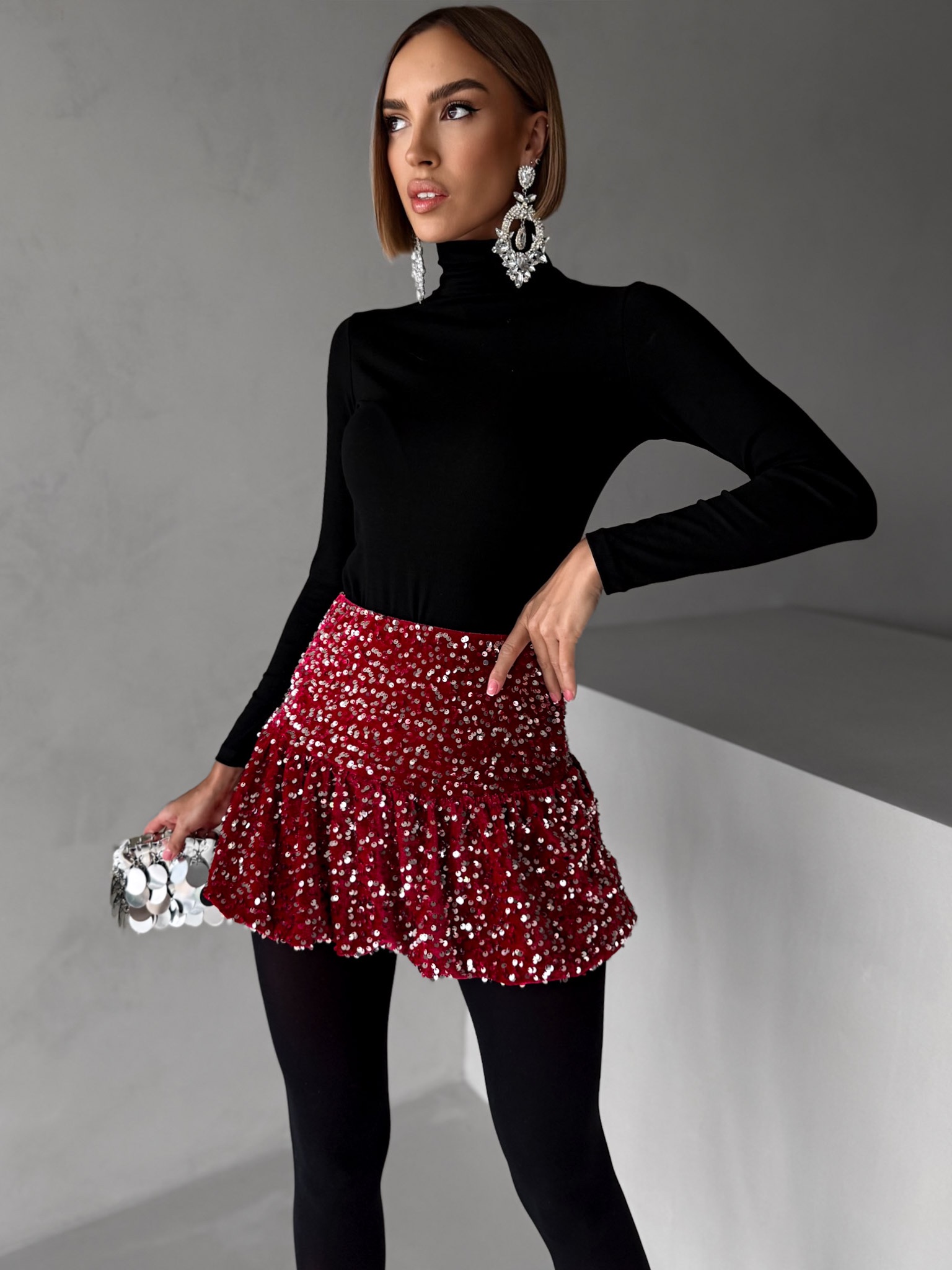 Červená mini flitrovaná balónová sukně CHAIM Velikost: ONESIZE