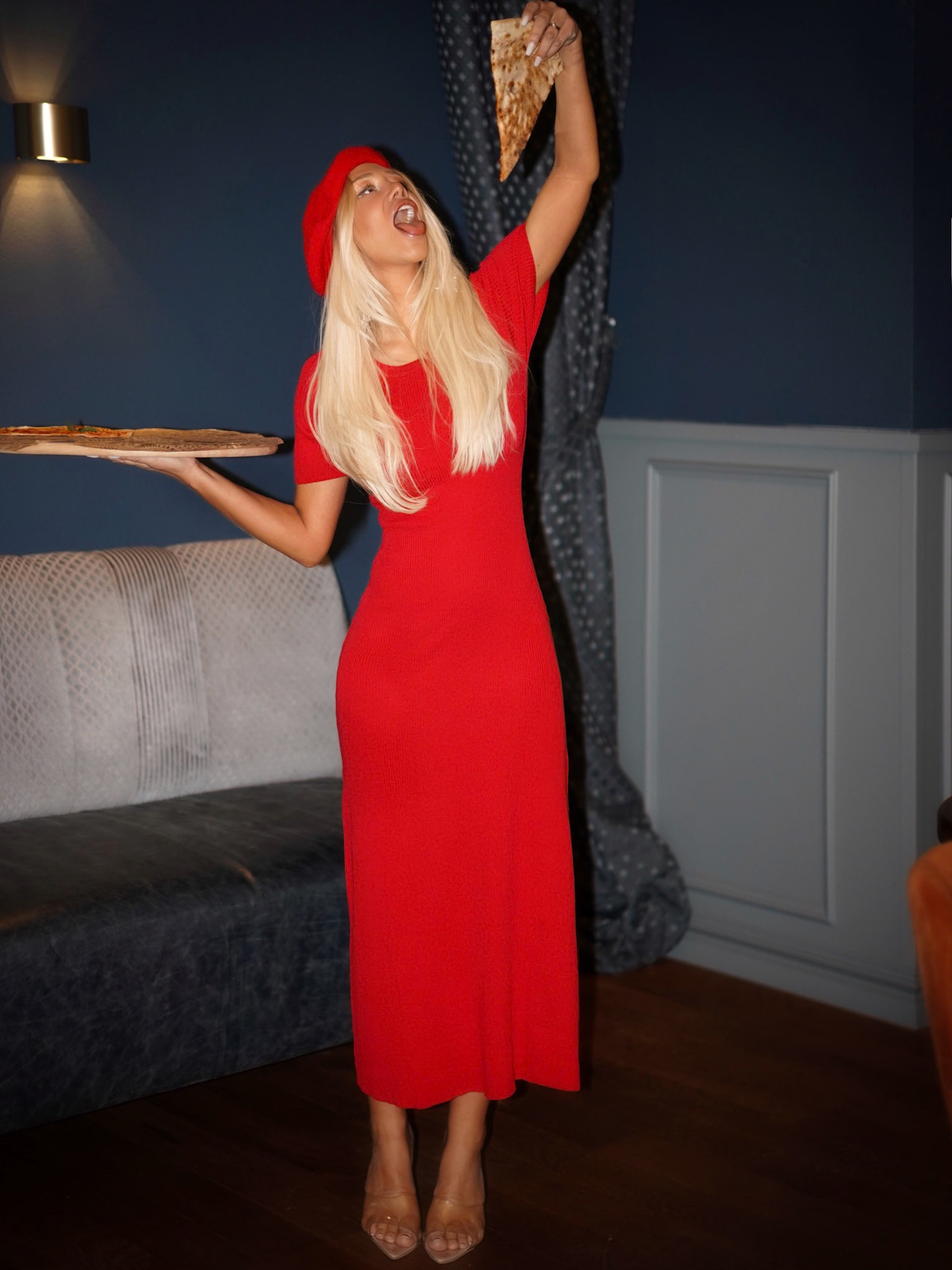 Červené dlouhé žerzejové šaty ISADORA Velikost: ONESIZE