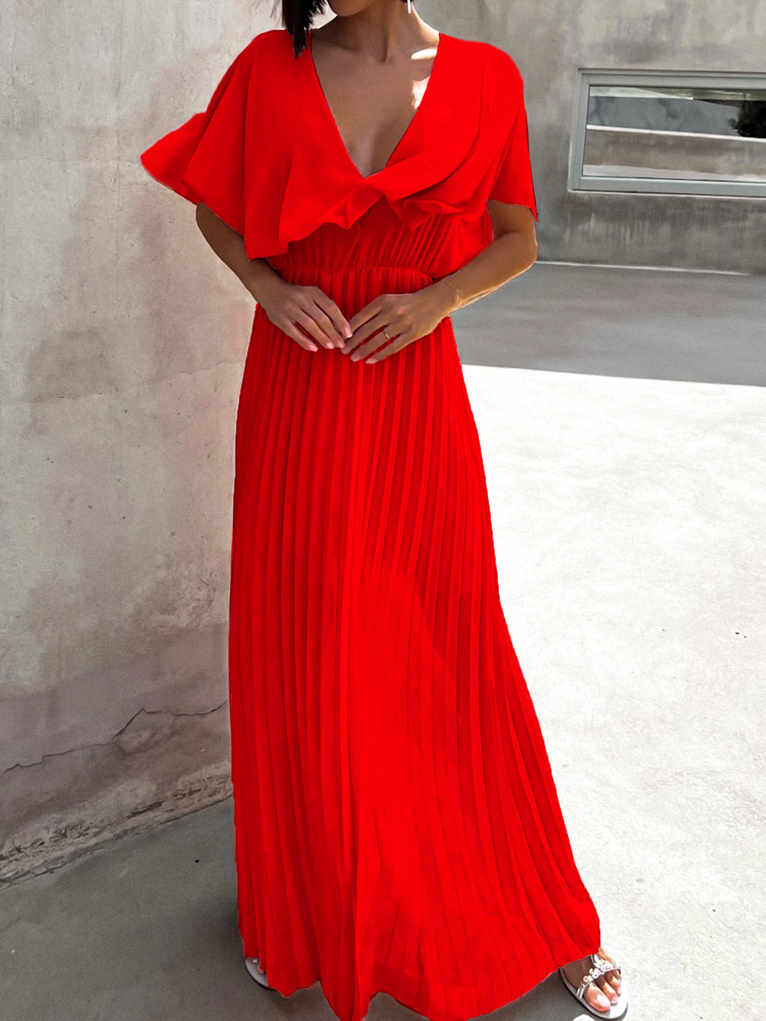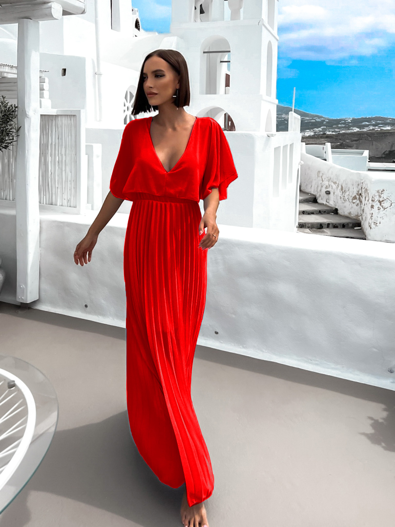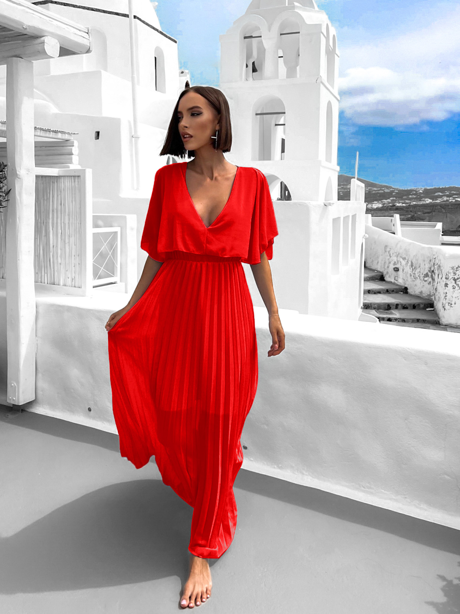Červené elegantní šaty PARFOMELLE s výsřihem do V Velikost: ONESIZE