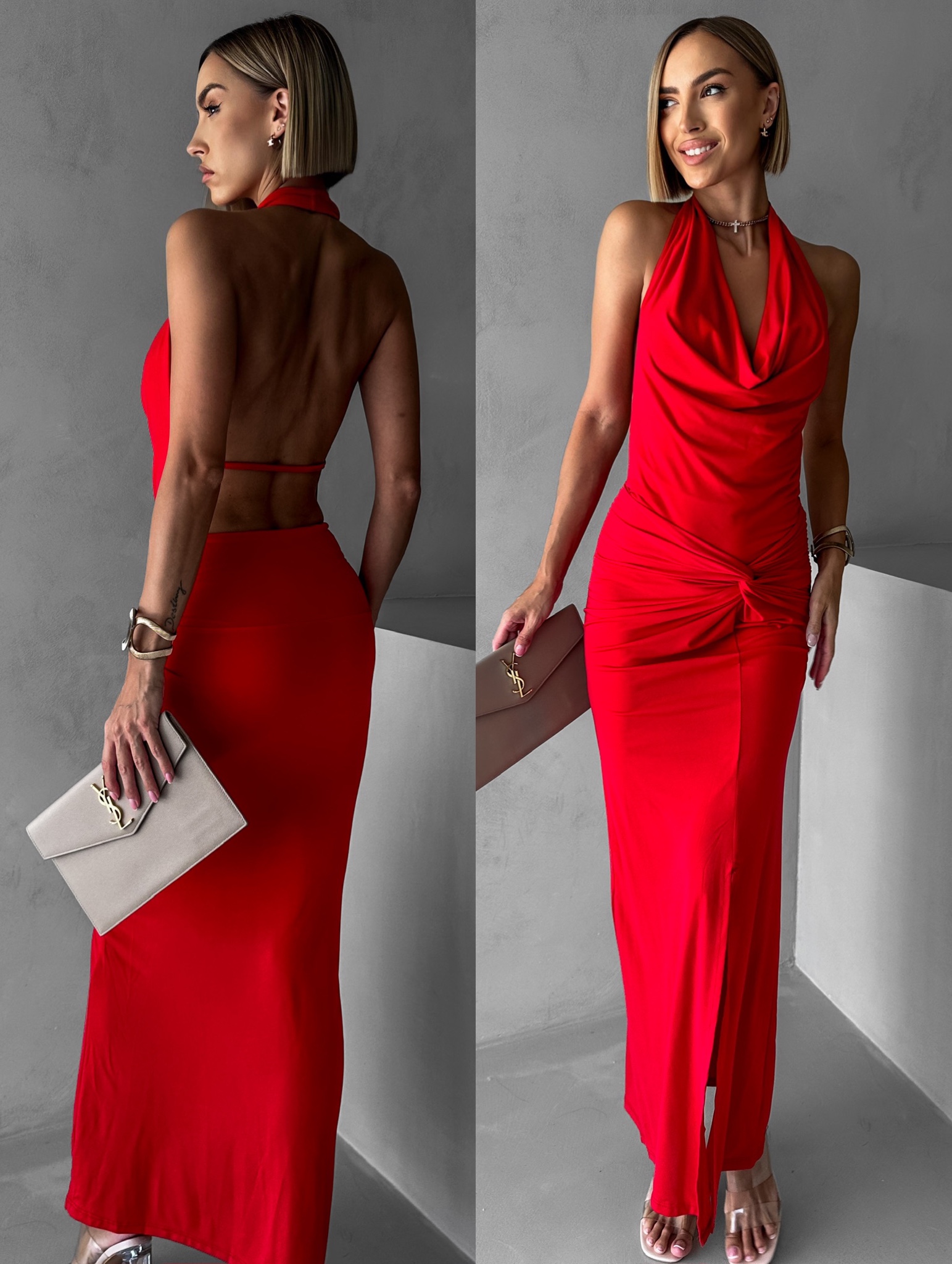 Červené elegantní šaty RHIANY s odhalenými zády Velikost: ONESIZE