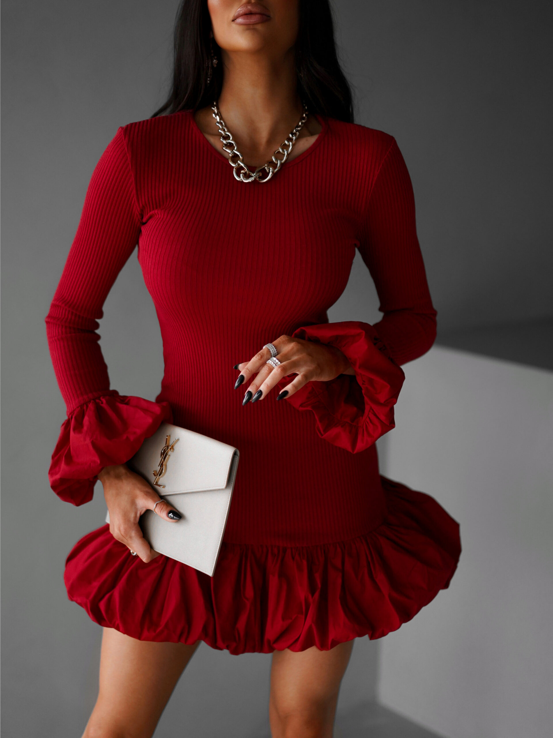 Červené krátké šaty HUYNH s volánem Velikost: M/L