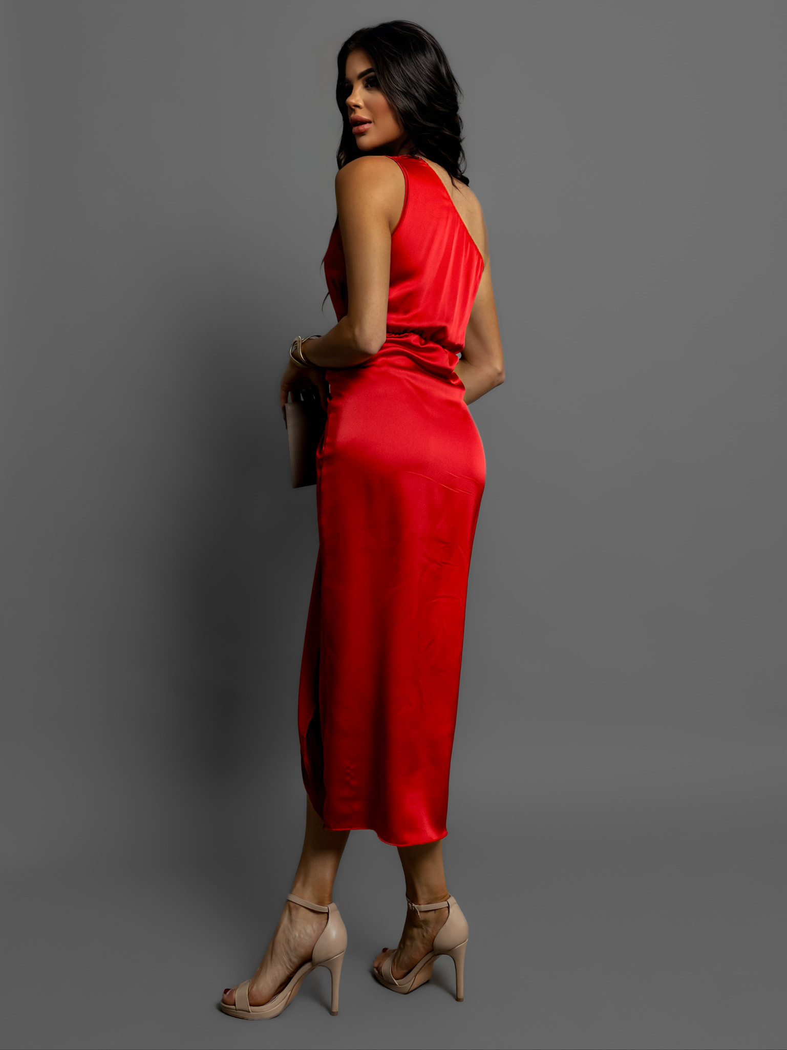Červené lesklé elegantní šaty LIBIOSI s uzlem Velikost: ONESIZE