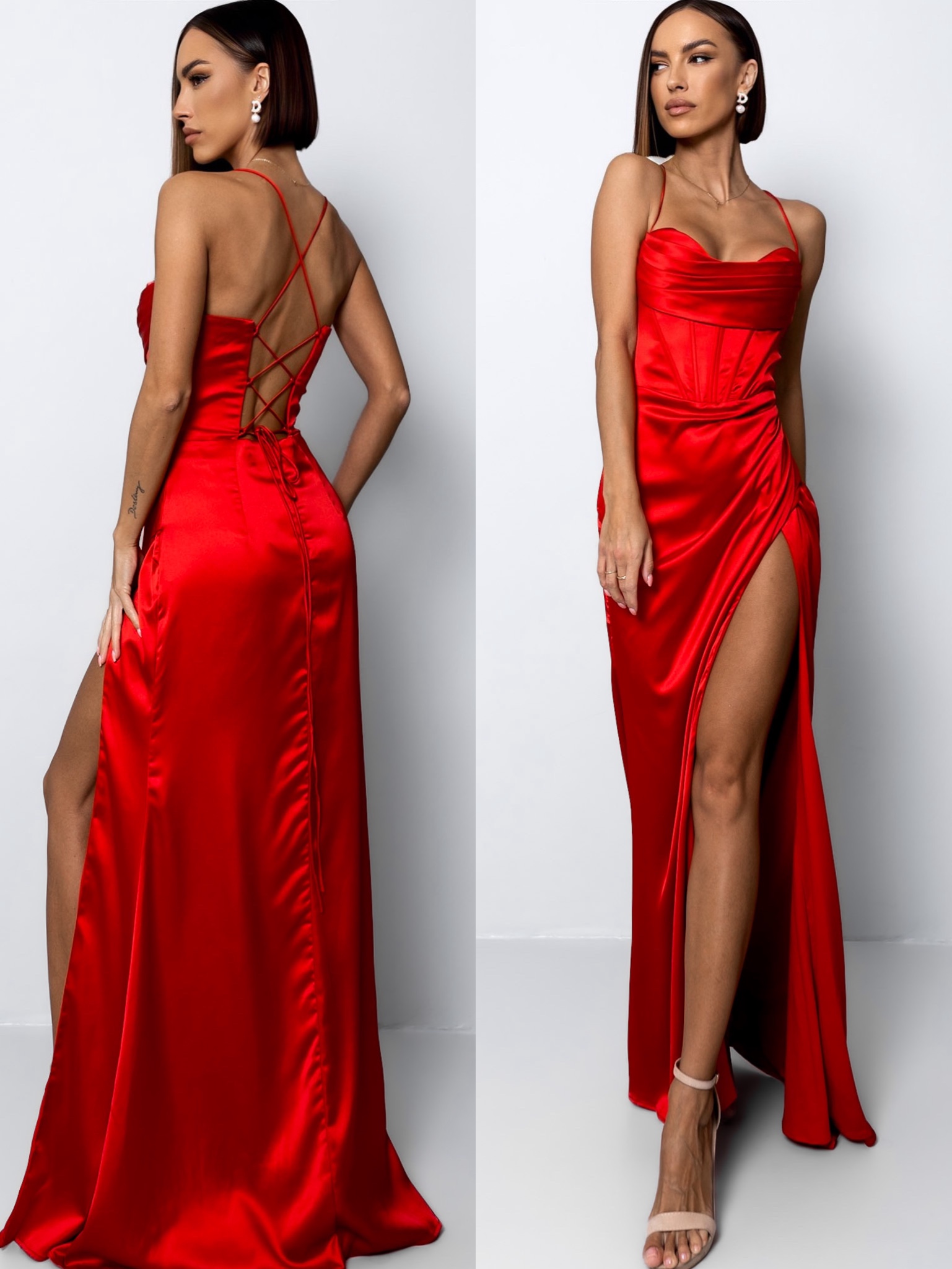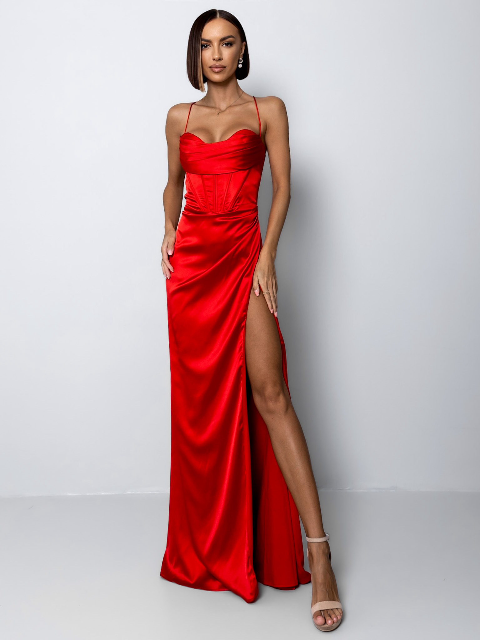 Červené plesové elegantní šaty VOLINET Velikost: L