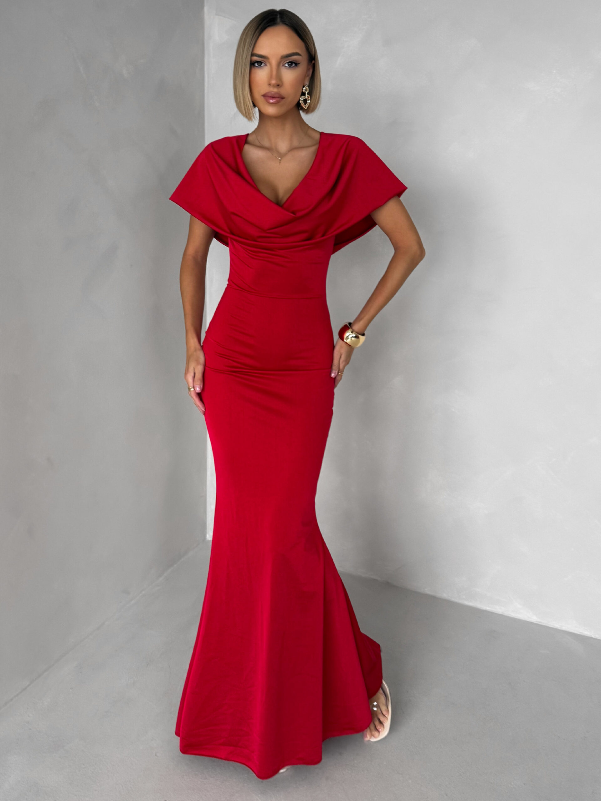 Červené společenské dlouhé šaty VELIQUE Velikost: ONESIZE