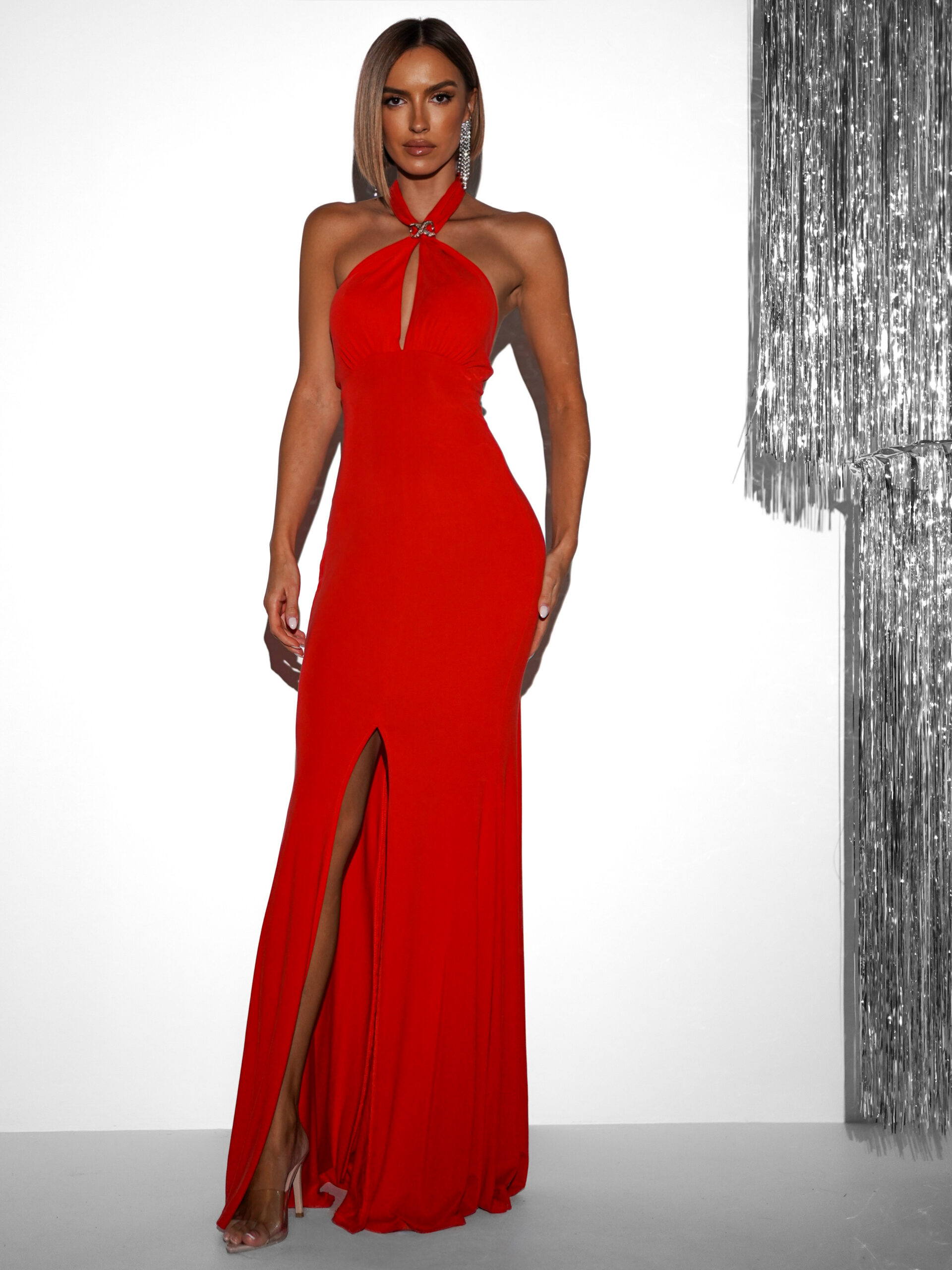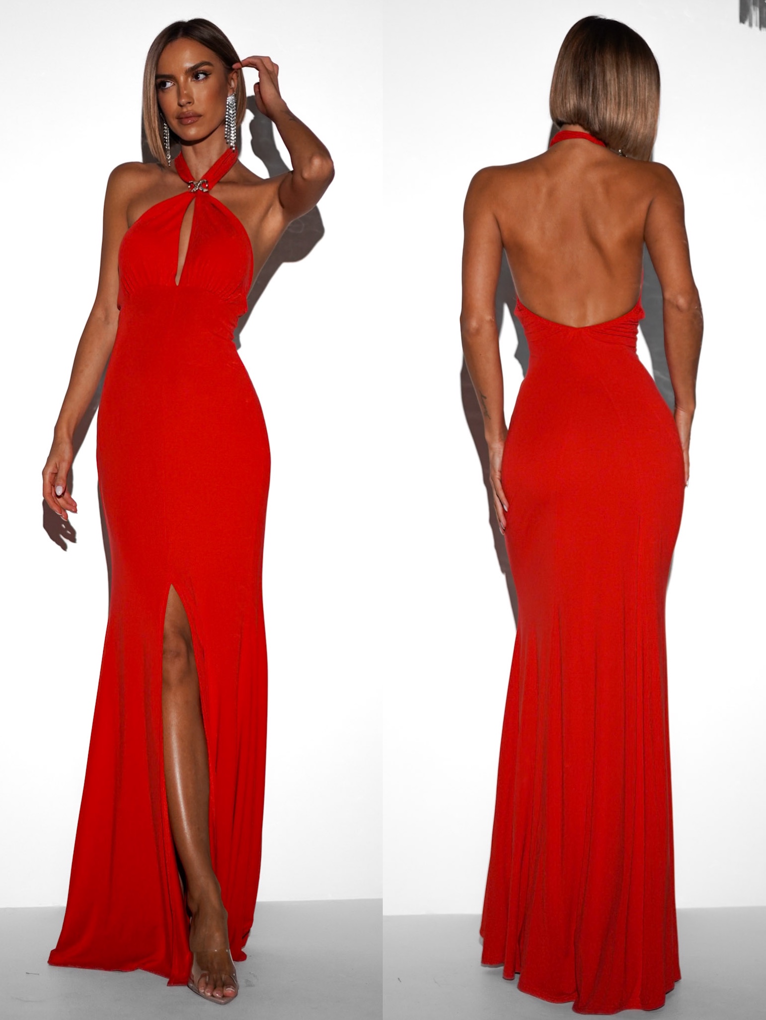 Červené večerní dlouhé šaty TRUCE s holými zády Velikost: M
