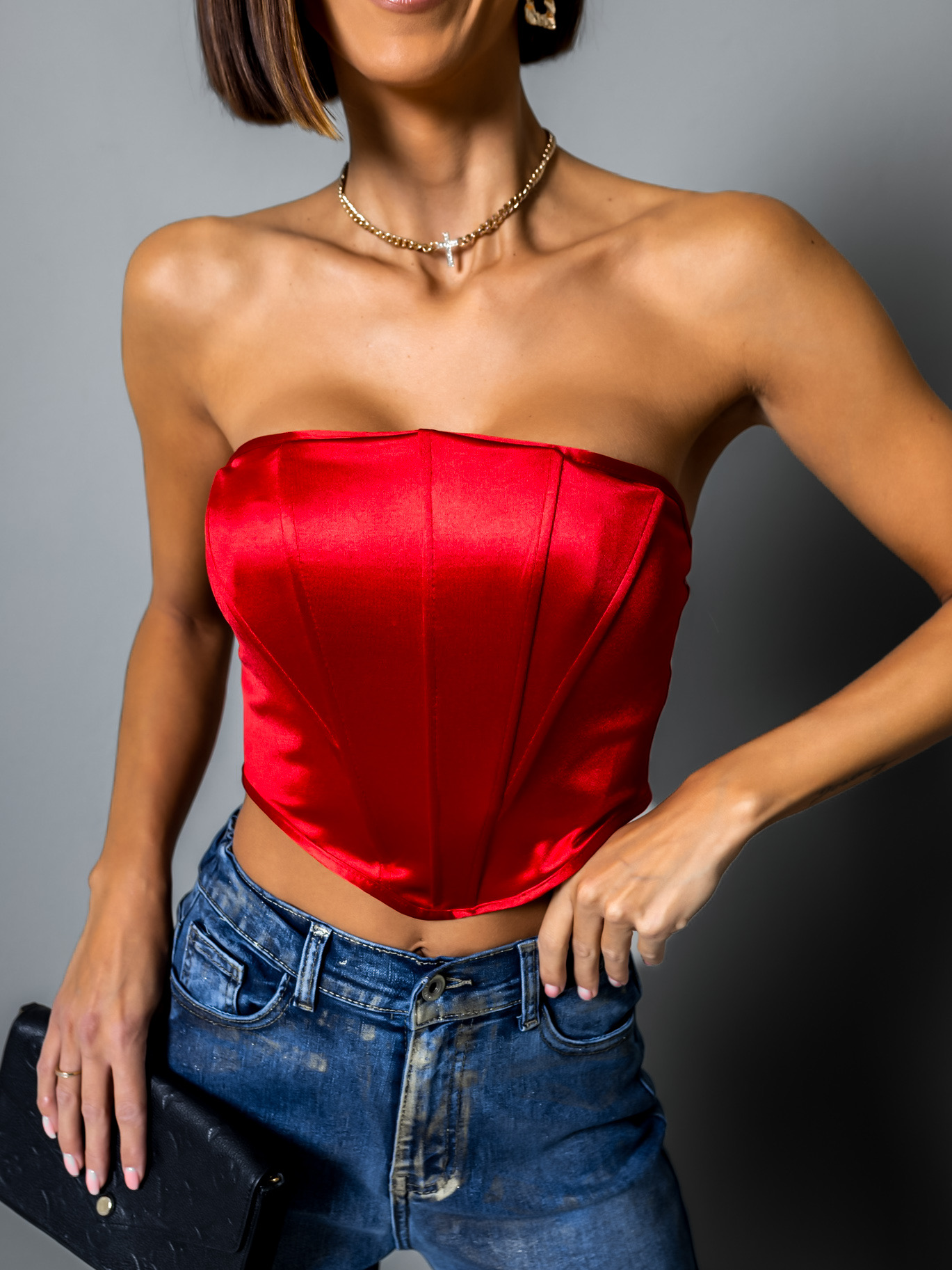 Červený elegantní crop top METEORITE