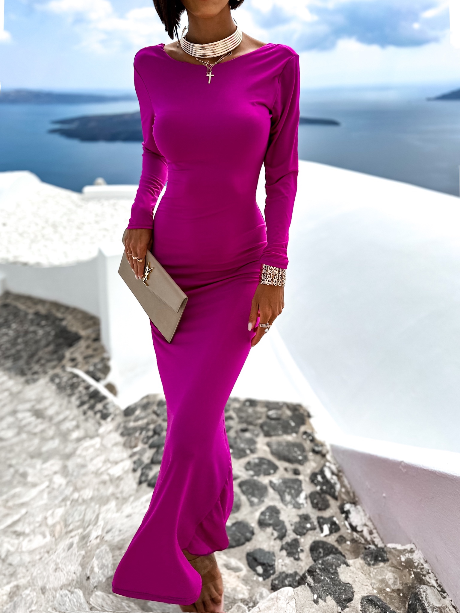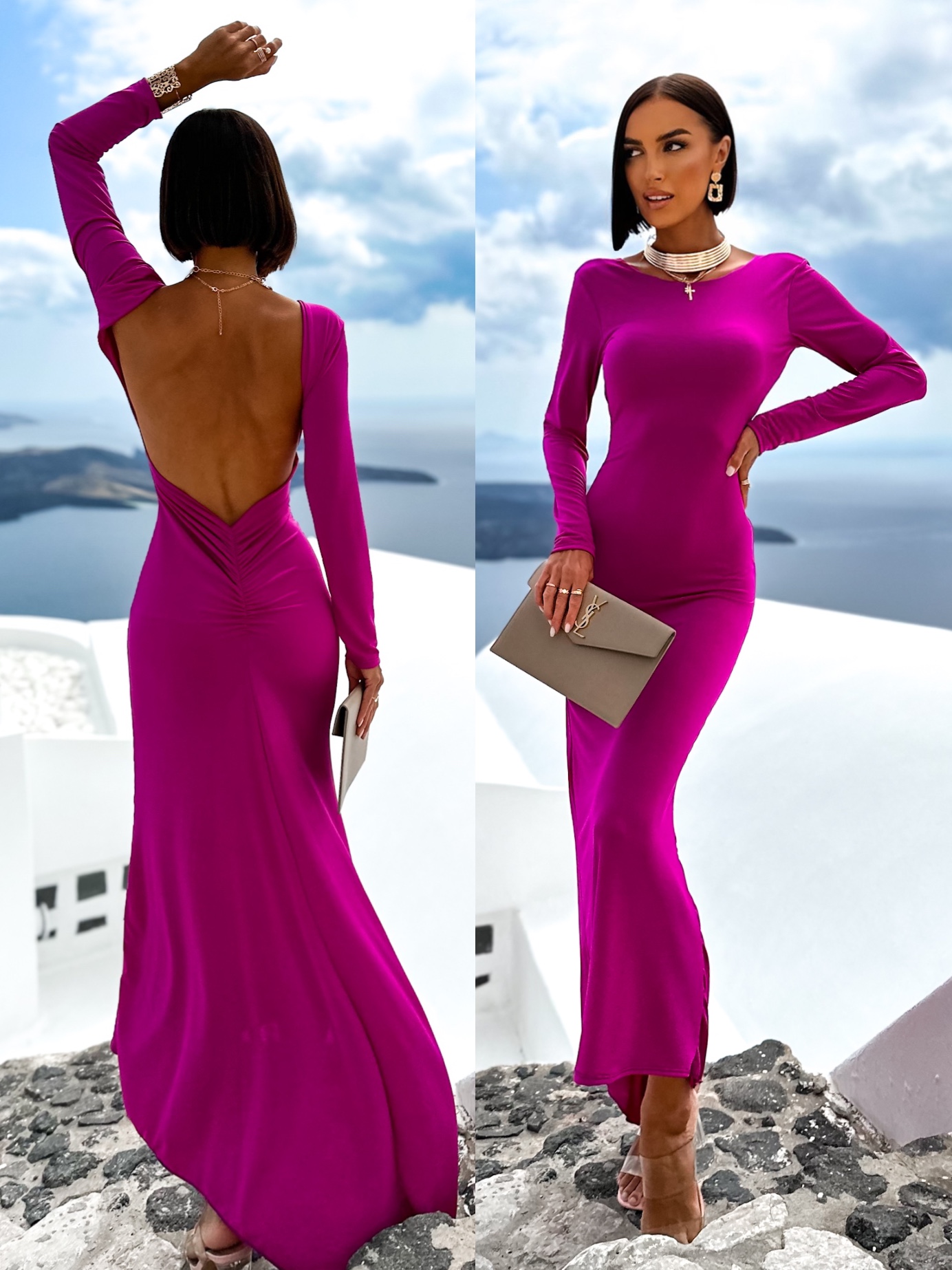 Fialové dlouhé elegantní šaty NINTENI s průstřihem na zádech Velikost: ONESIZE