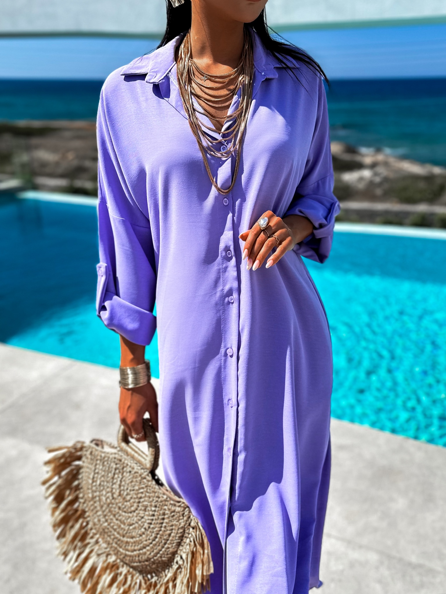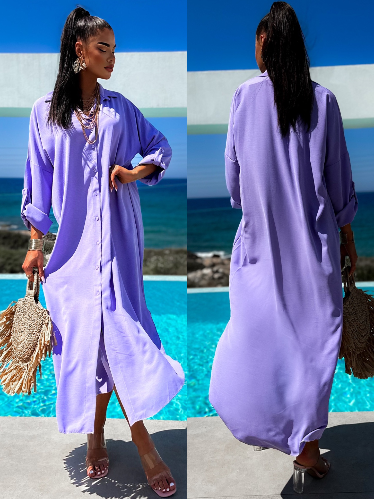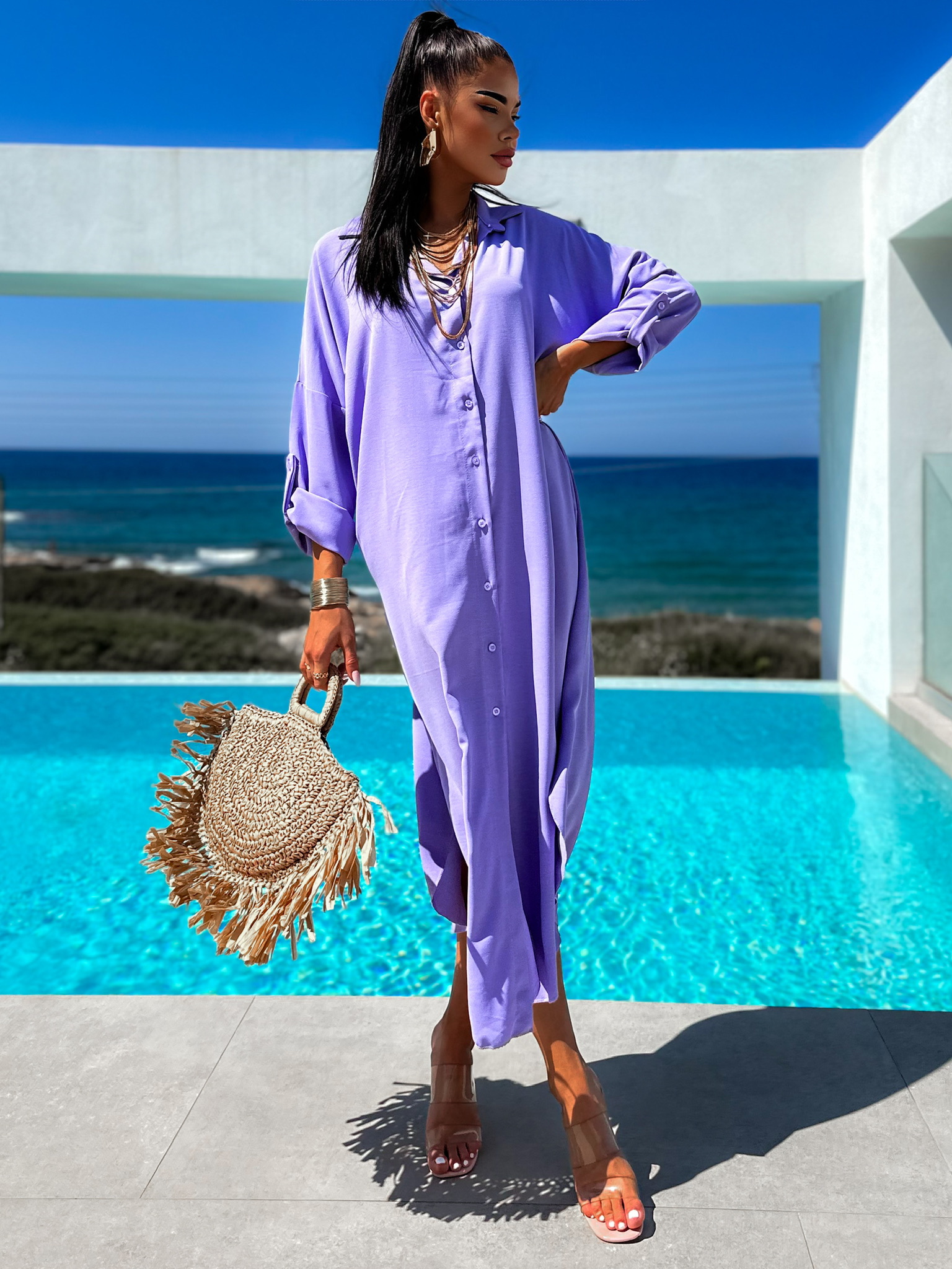 Fialové dlouhé košilové šaty NESSY Velikost: ONESIZE