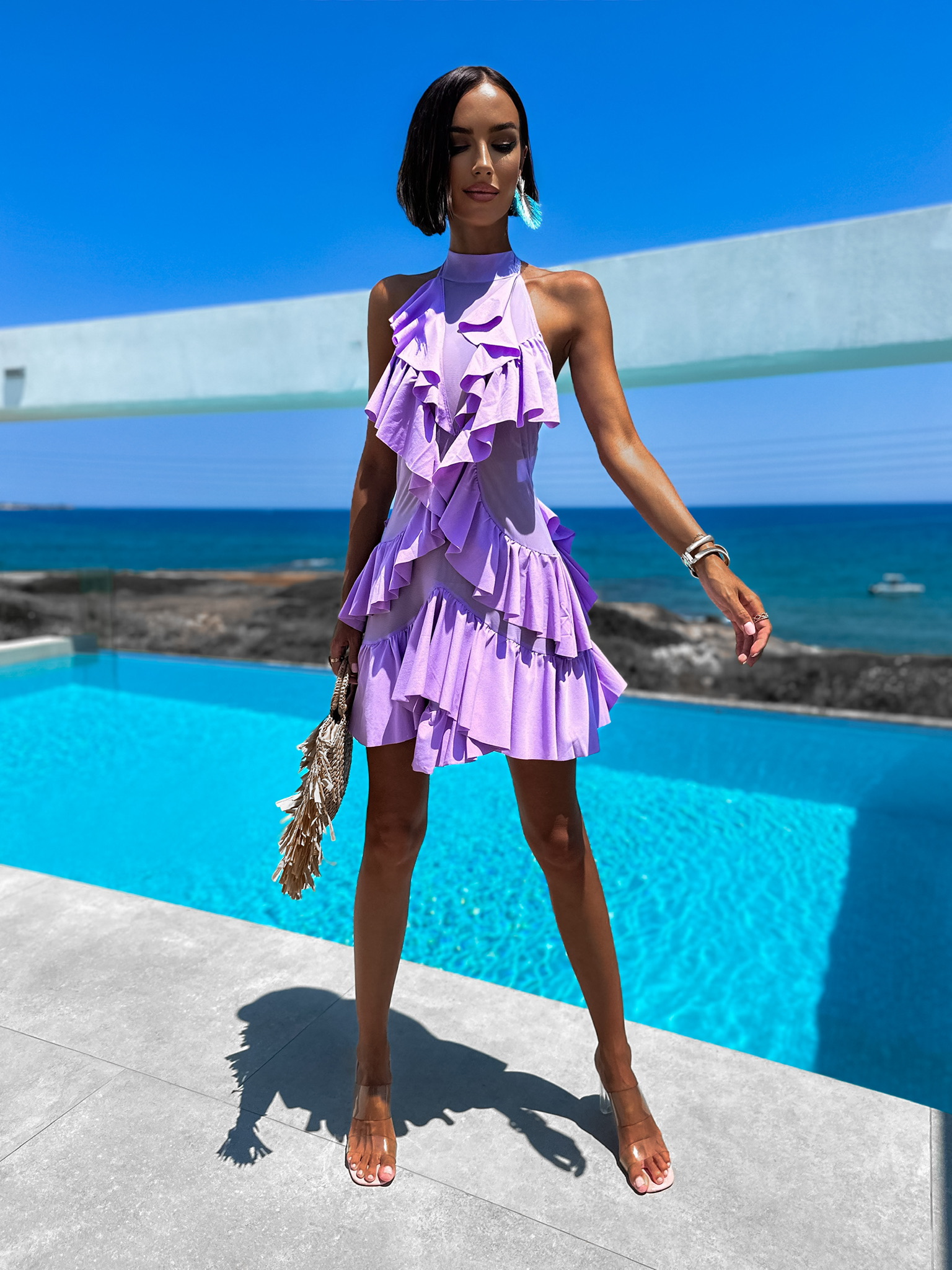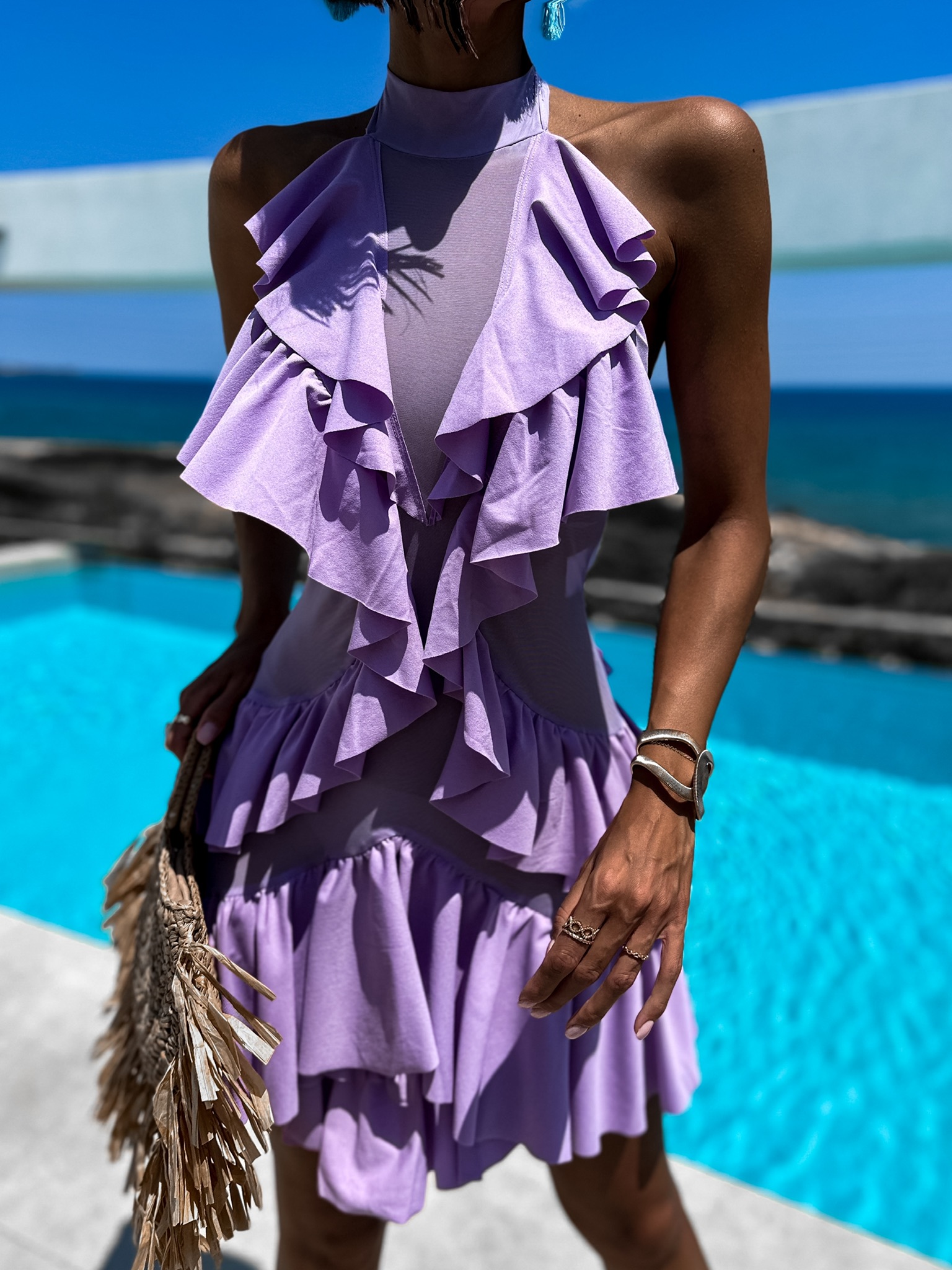 Fialové elegantní šaty EDWINS s volánky Velikost: S