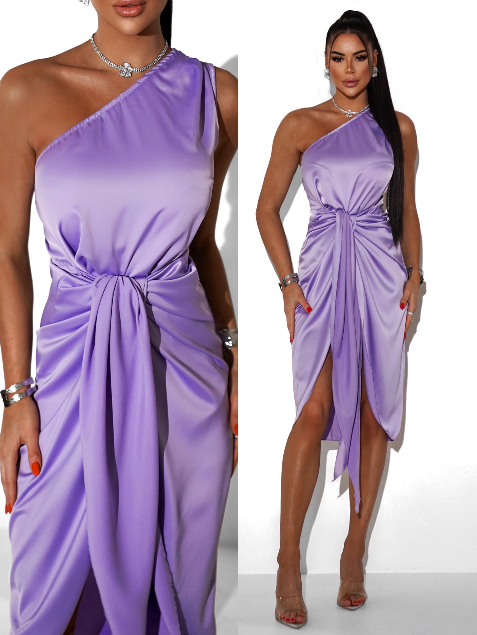 Fialové koktejlové asymetrické saténové šaty LIBIOSI Velikost: ONESIZE