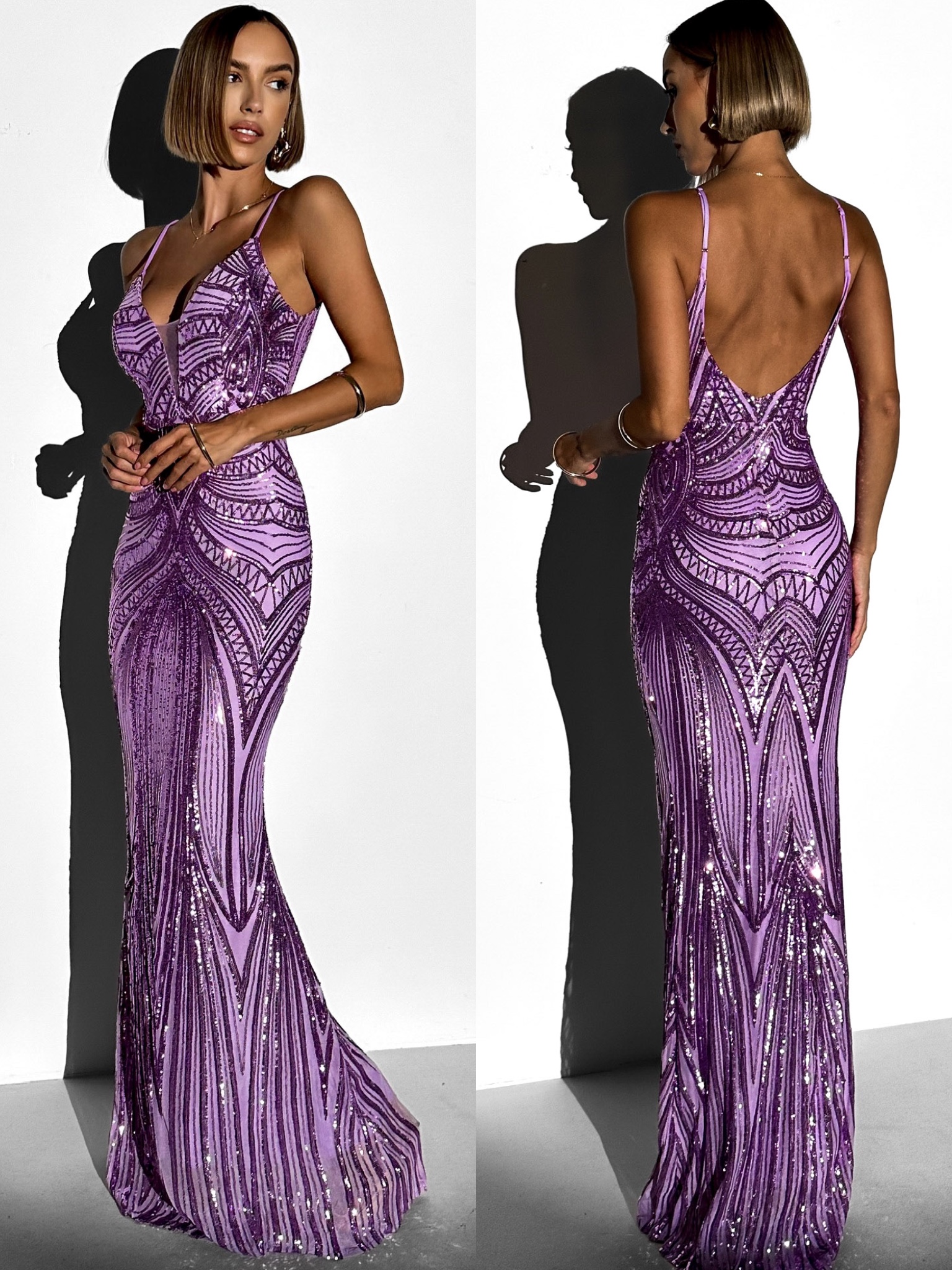 Fialové plesové dlouhé třpytivé šaty LAJSA Velikost: L