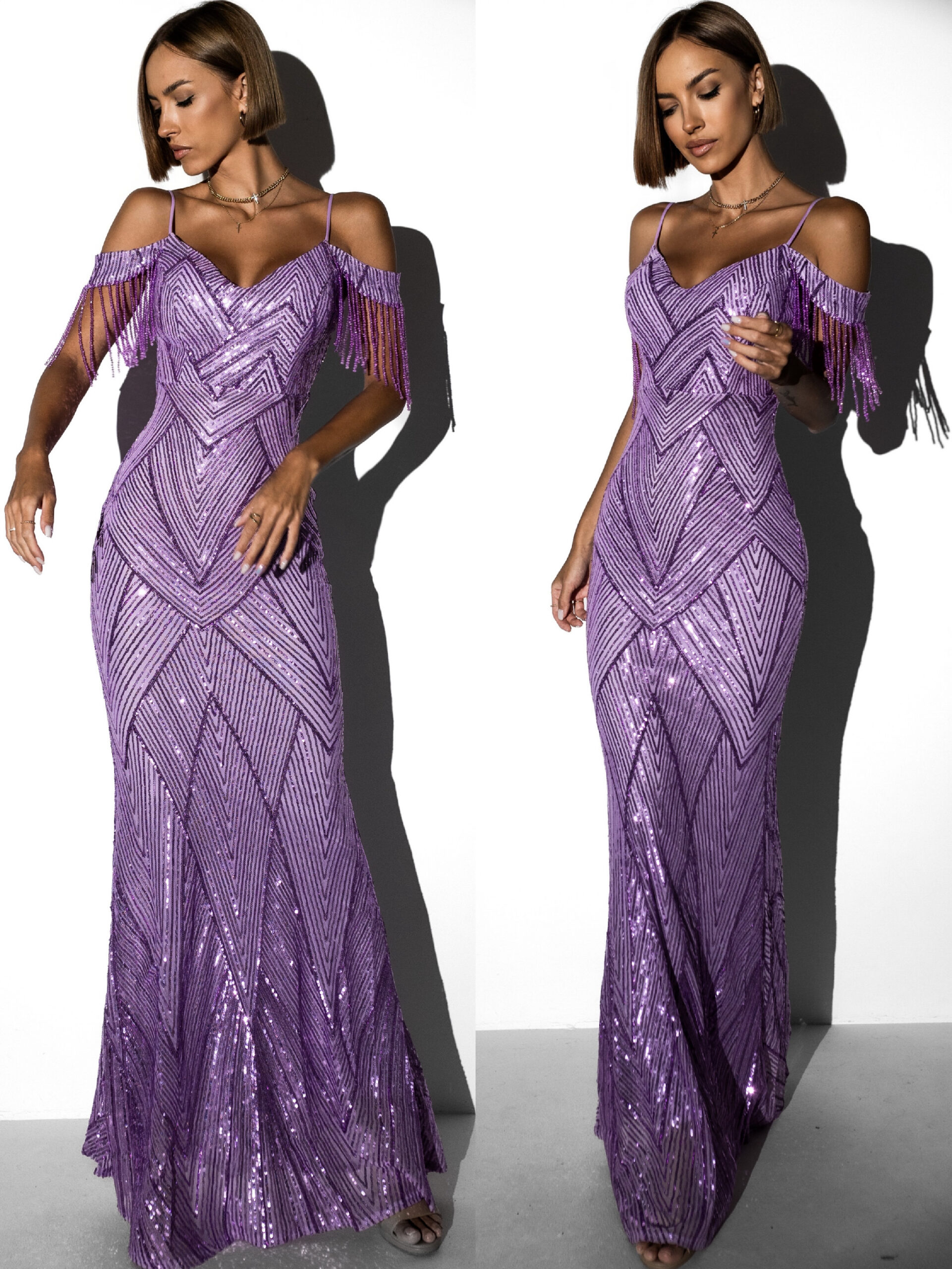 Fialové večerní třpytivé šaty NATSU s flitry Velikost: S