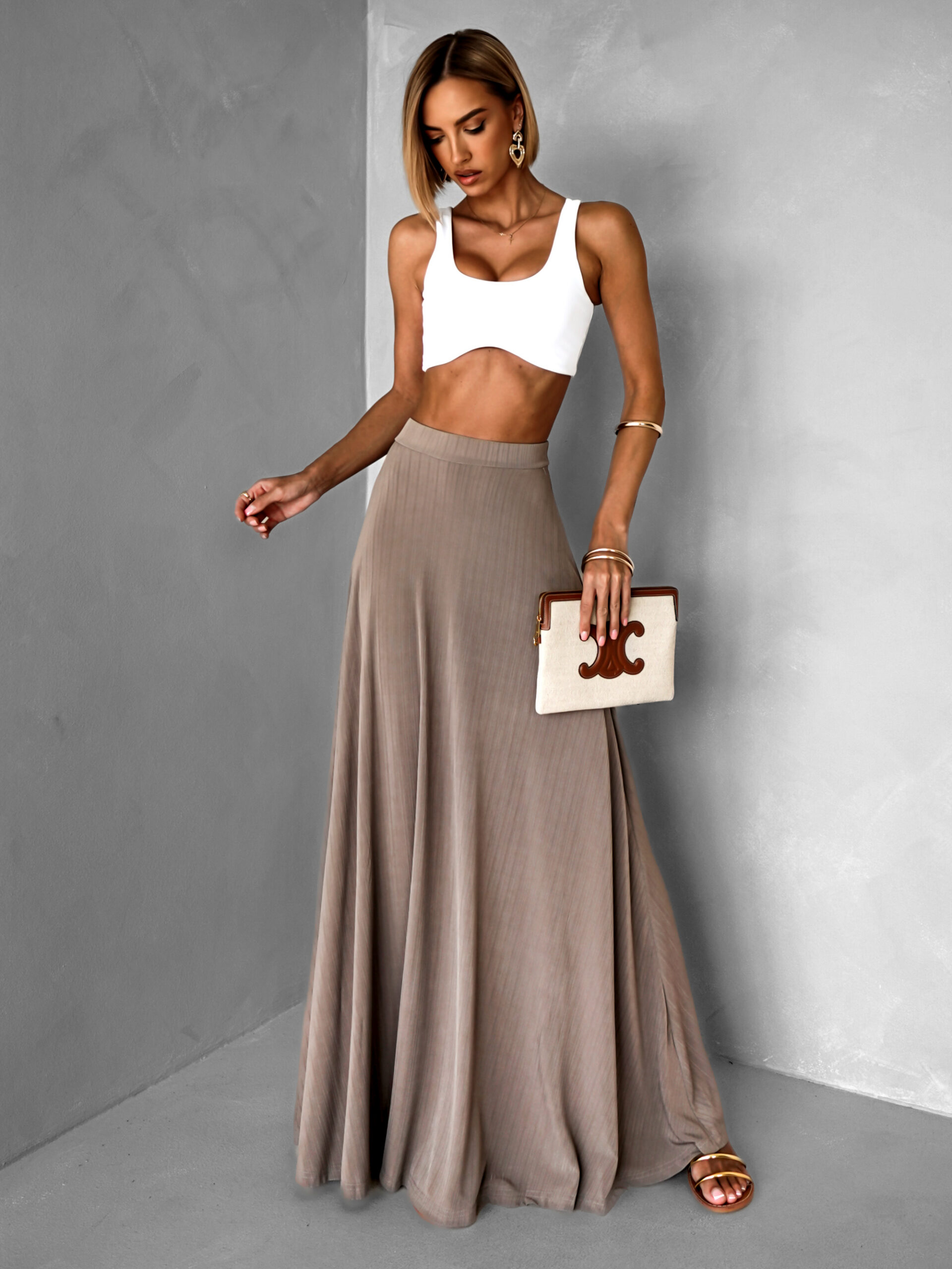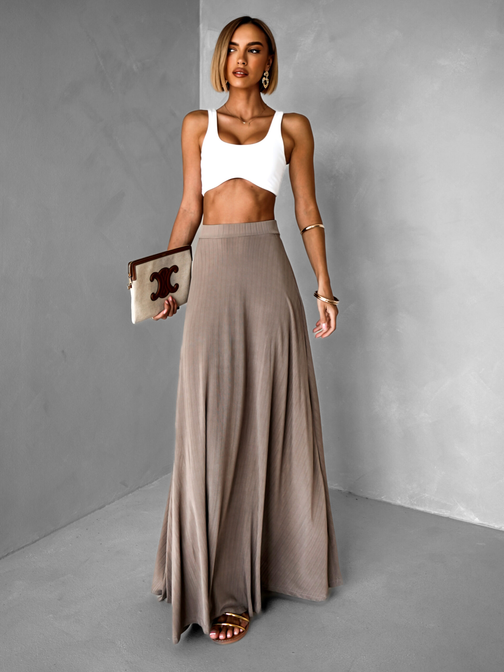 Hnědá áčková letní maxi sukně BOLOWA Velikost: ONESIZE