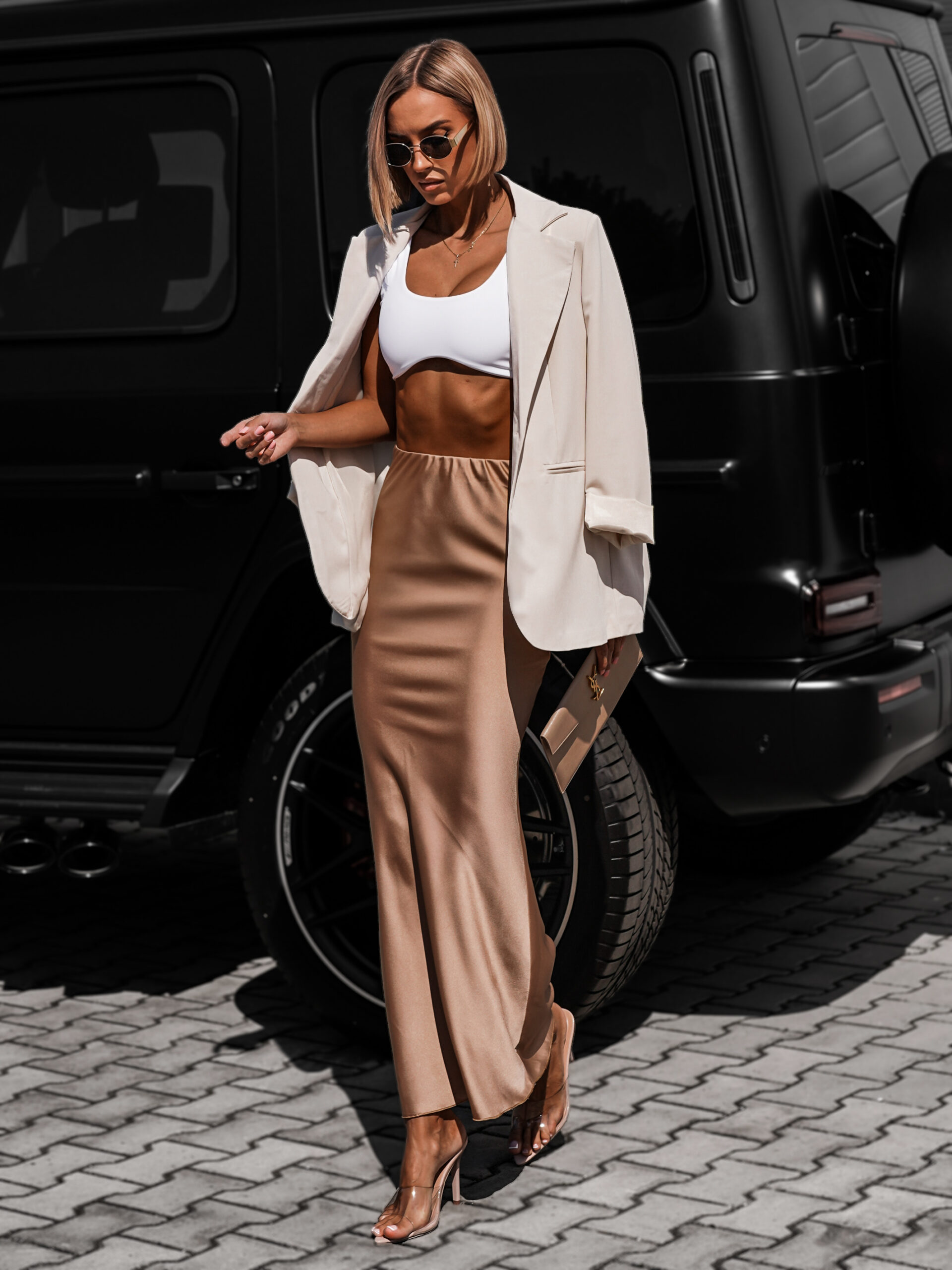 Hnědá dlouhá saténová maxi sukně REGENORY Velikost: ONESIZE