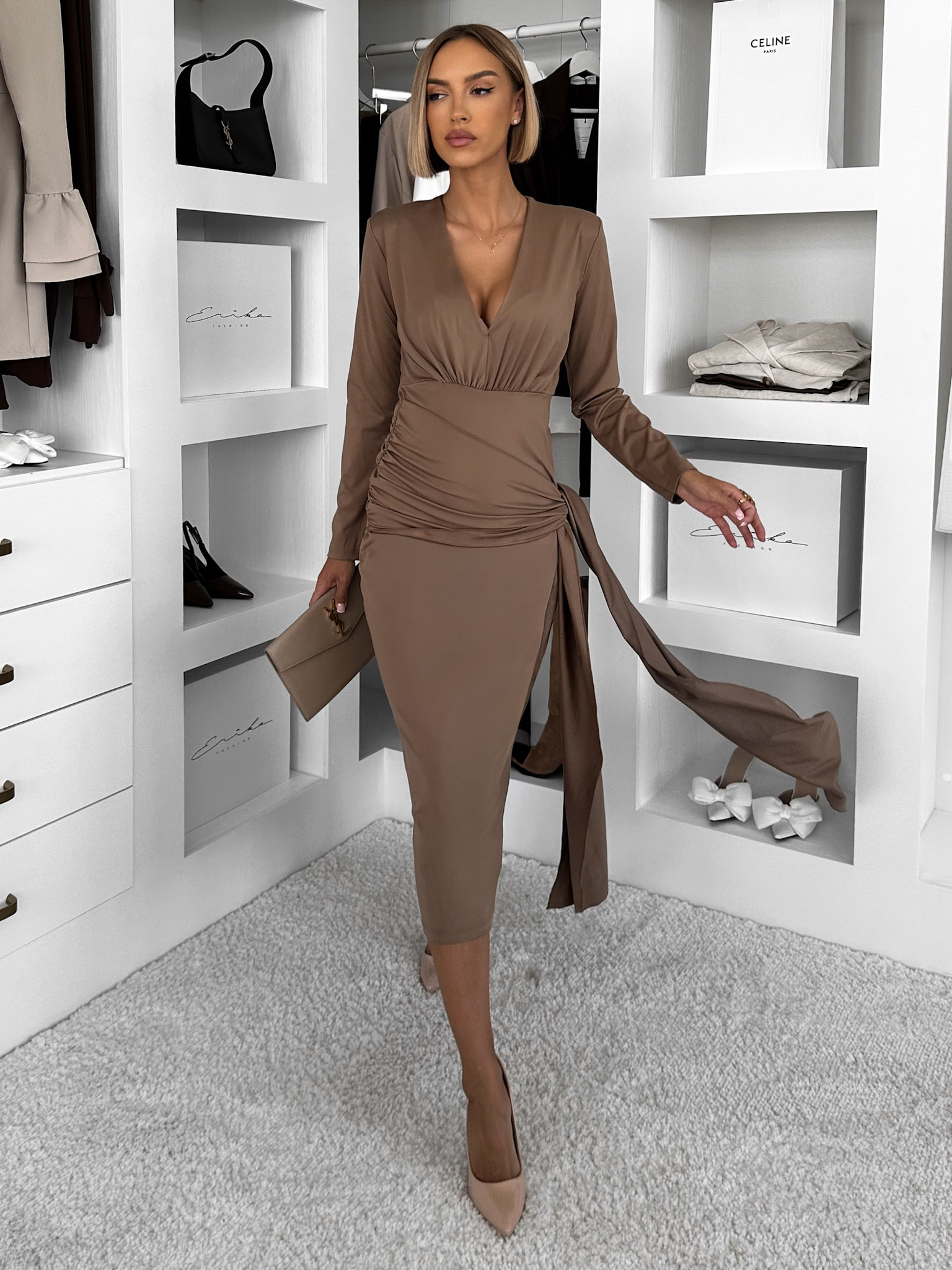 Hnědé dlouhé elegantní šaty AUTIS se zavazováním Velikost: ONESIZE
