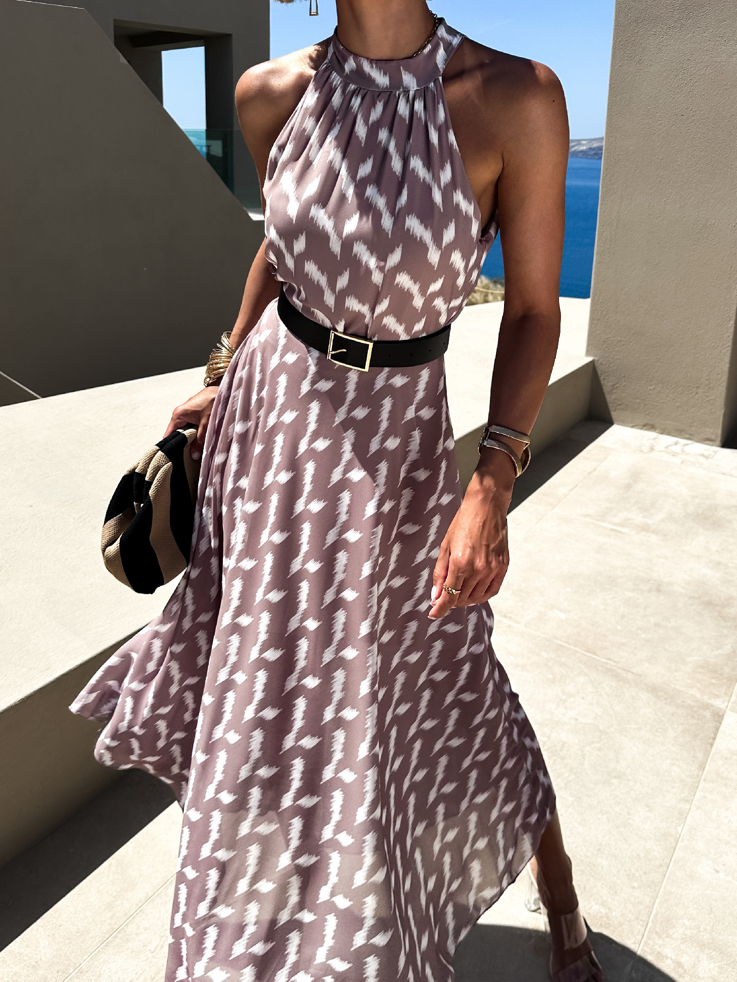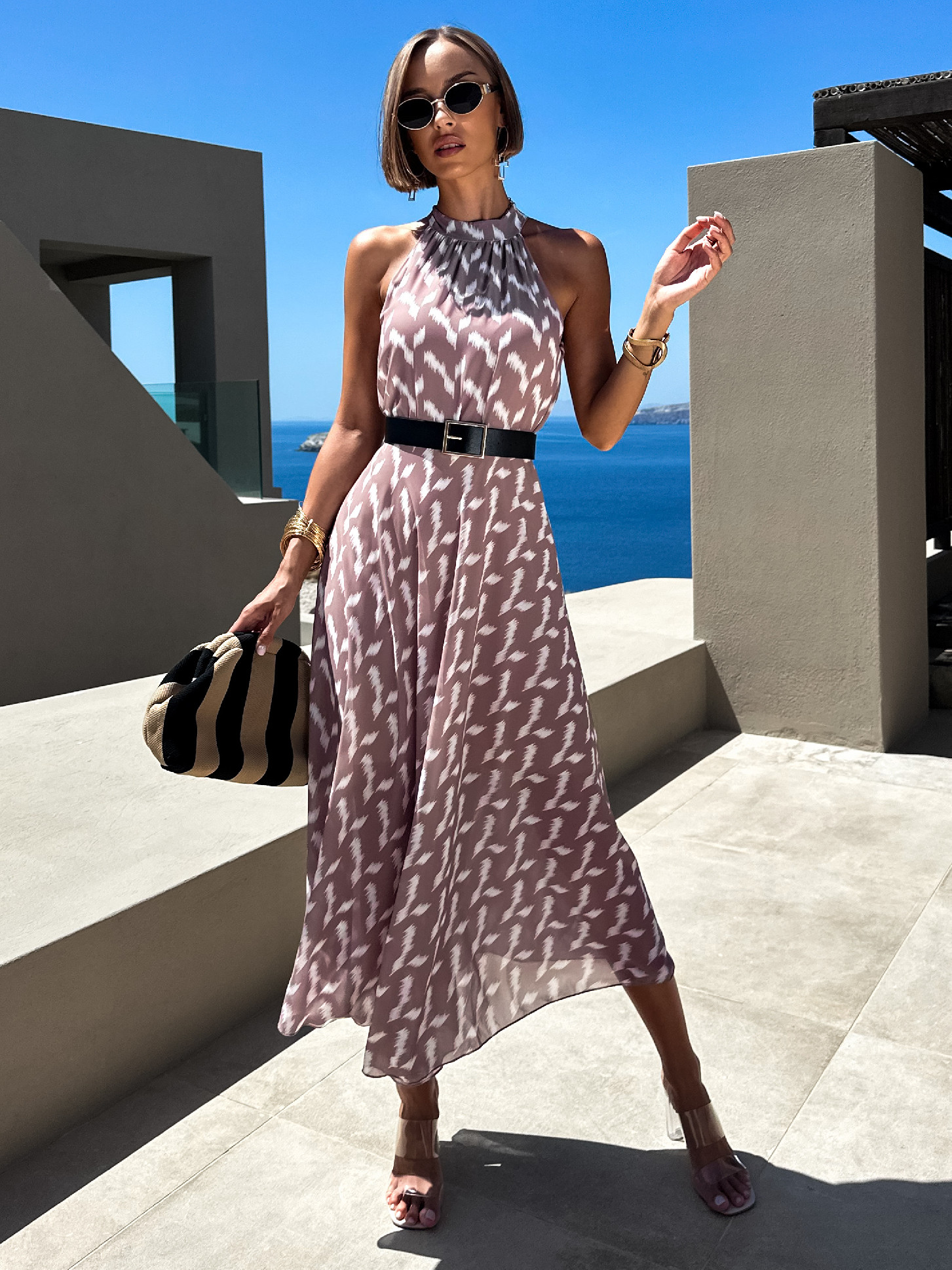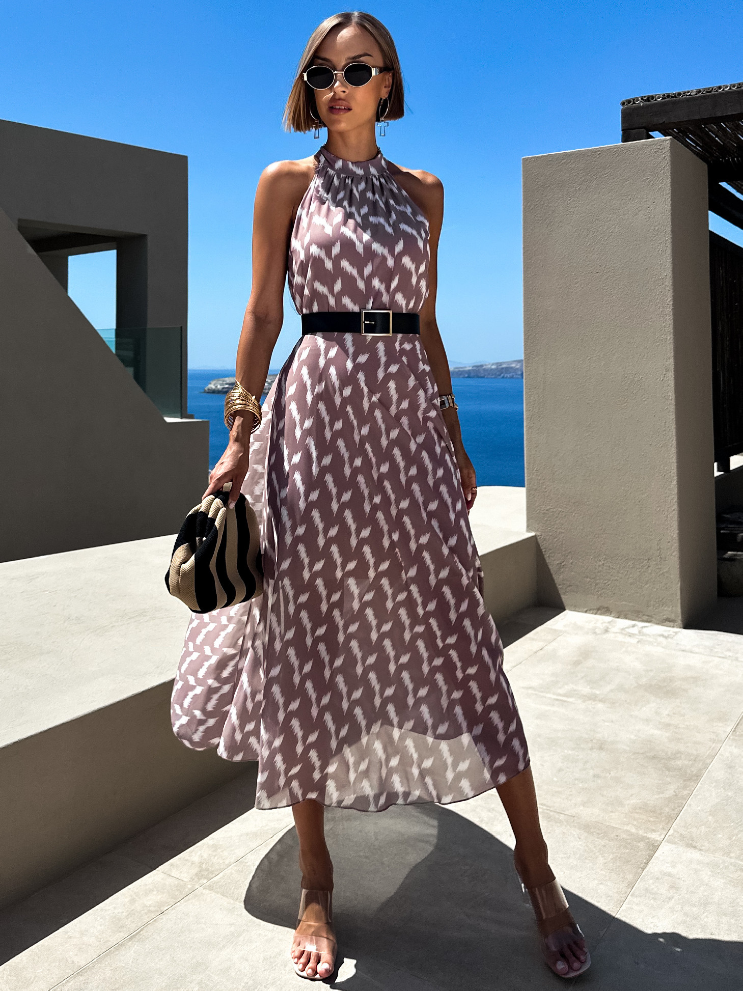 Hnědé dlouhé vzdušné šaty DLEGO s páskem Velikost: ONESIZE