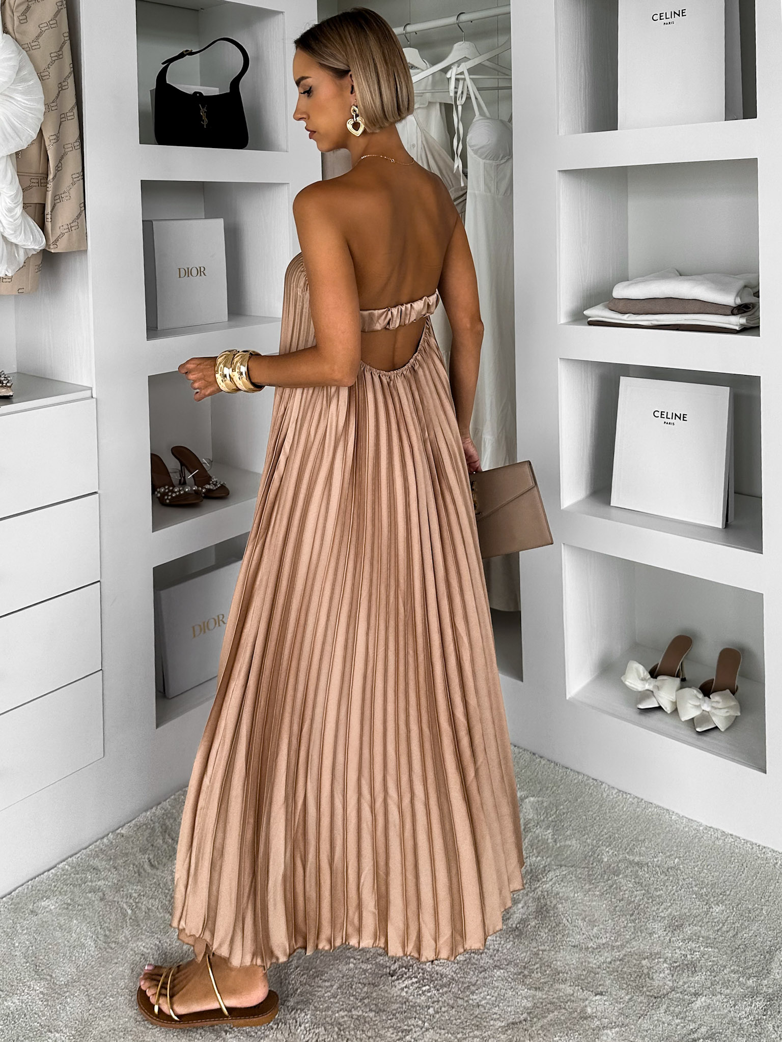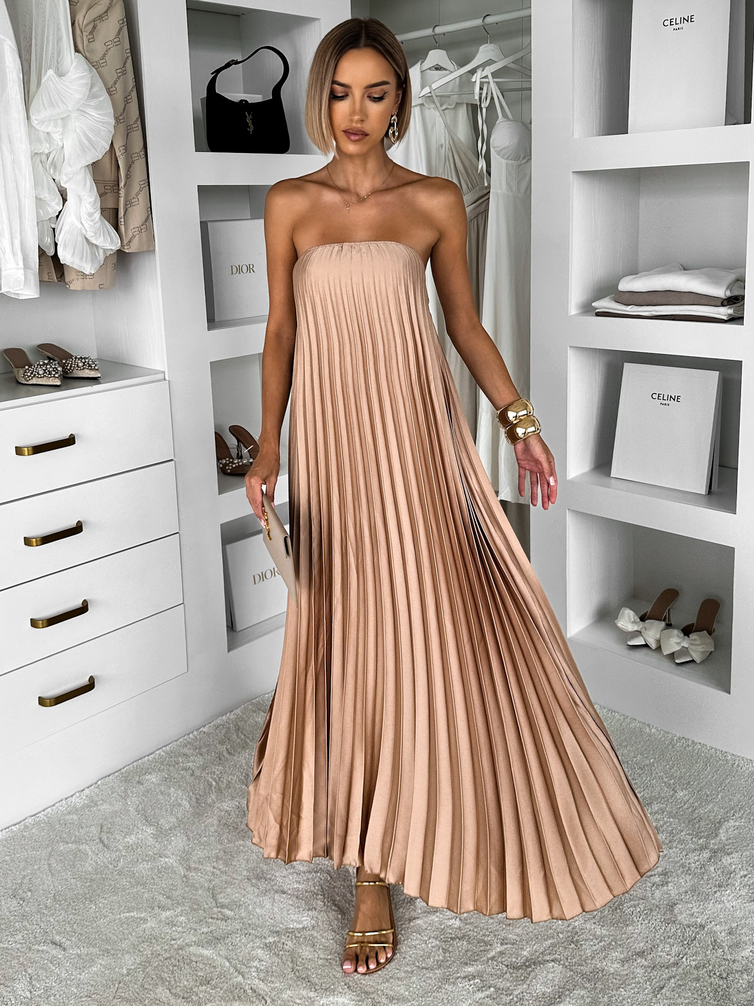 Hnědé plisované dlouhé šaty AMAONA Velikost: ONESIZE