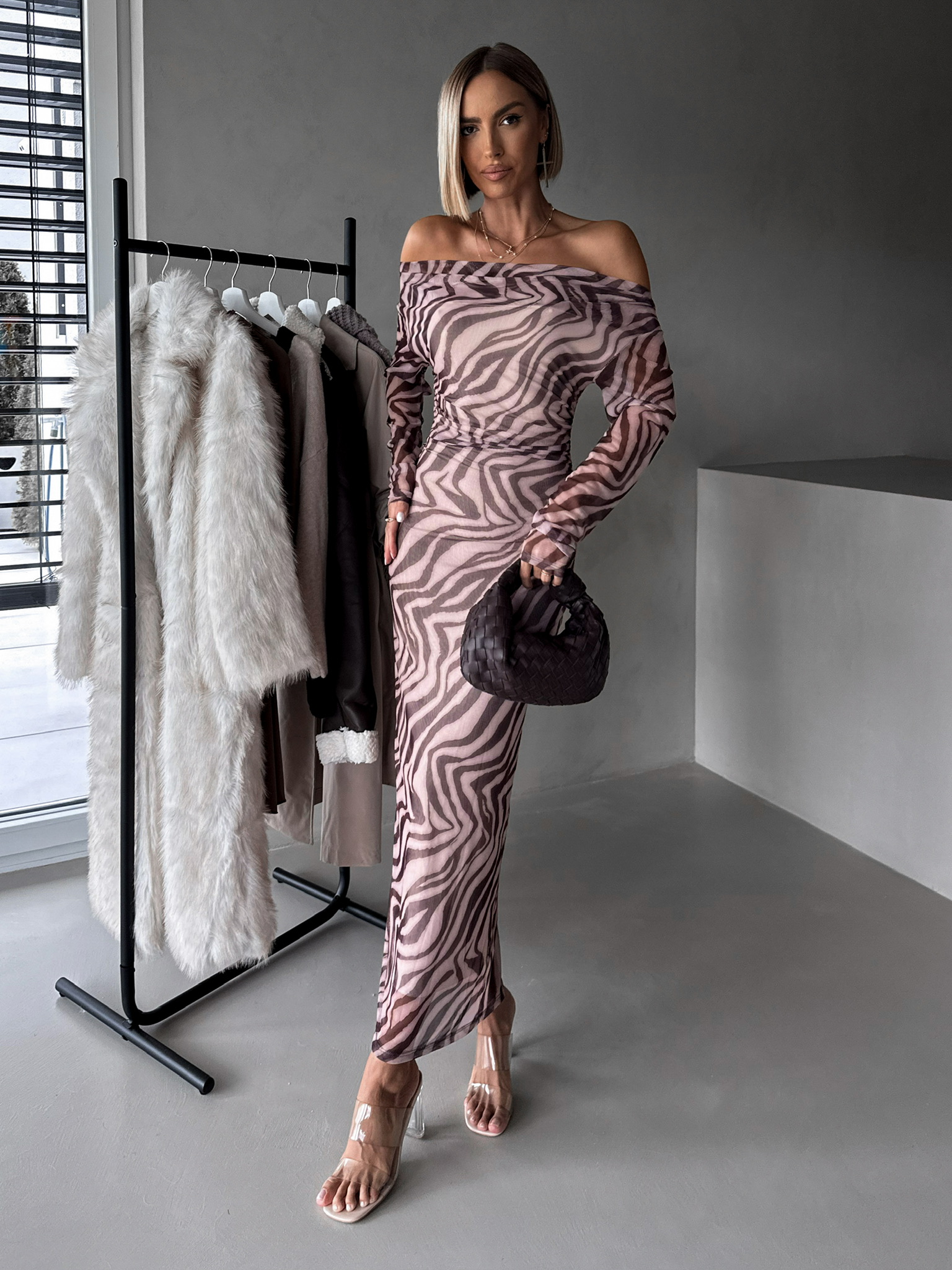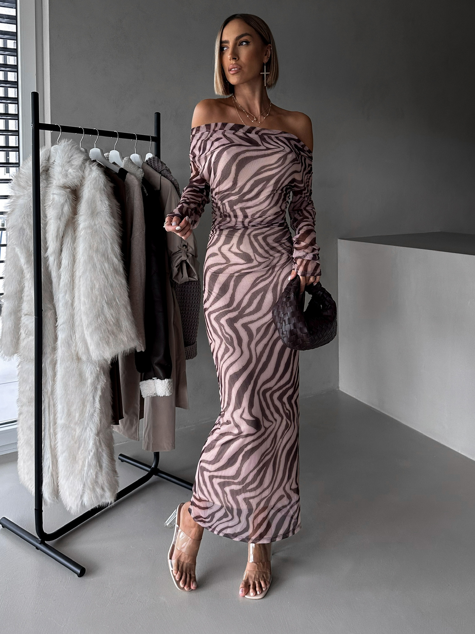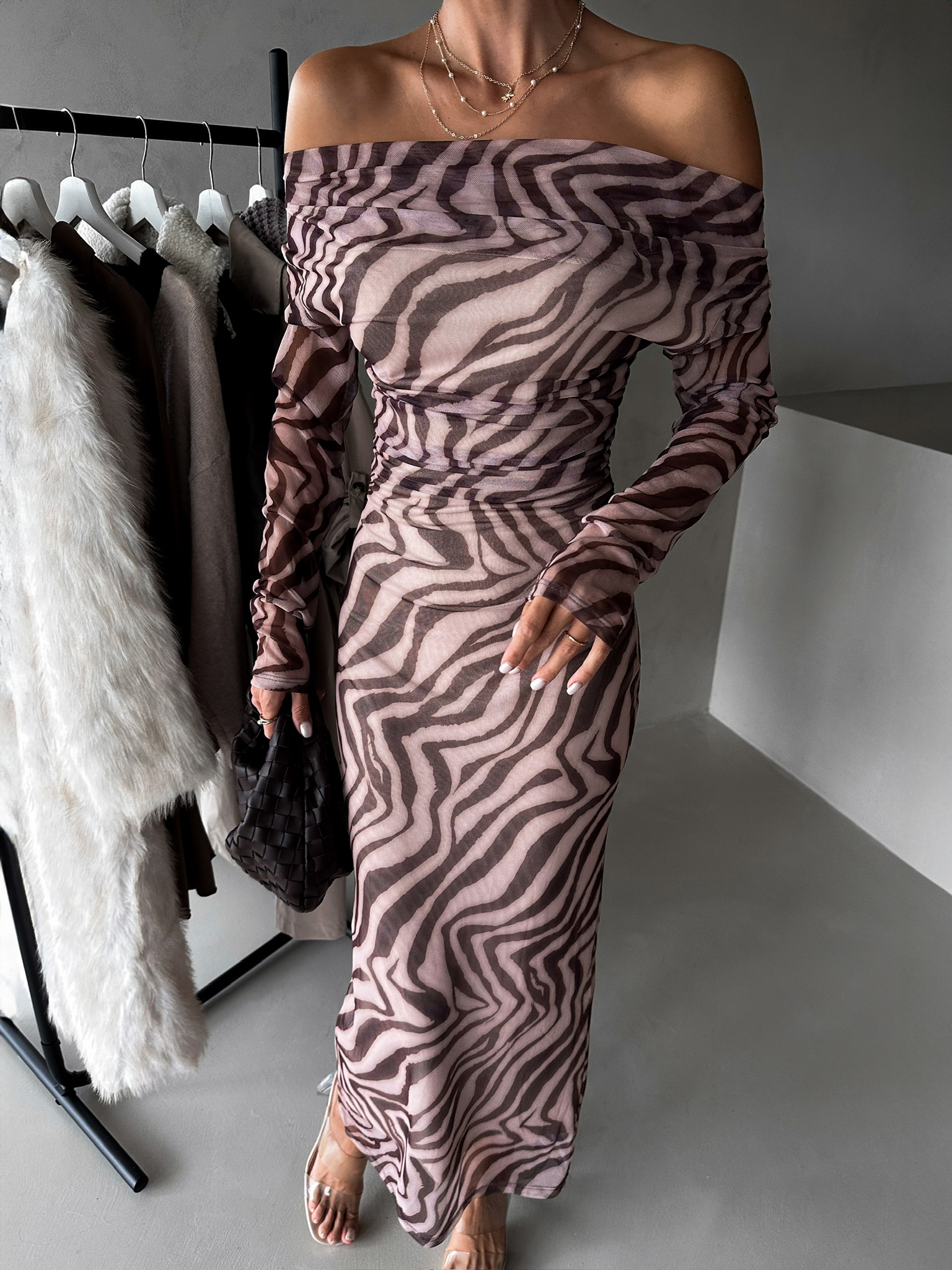 Hnědé přiléhavé dlouhé šaty ELPINIKI Velikost: ONESIZE