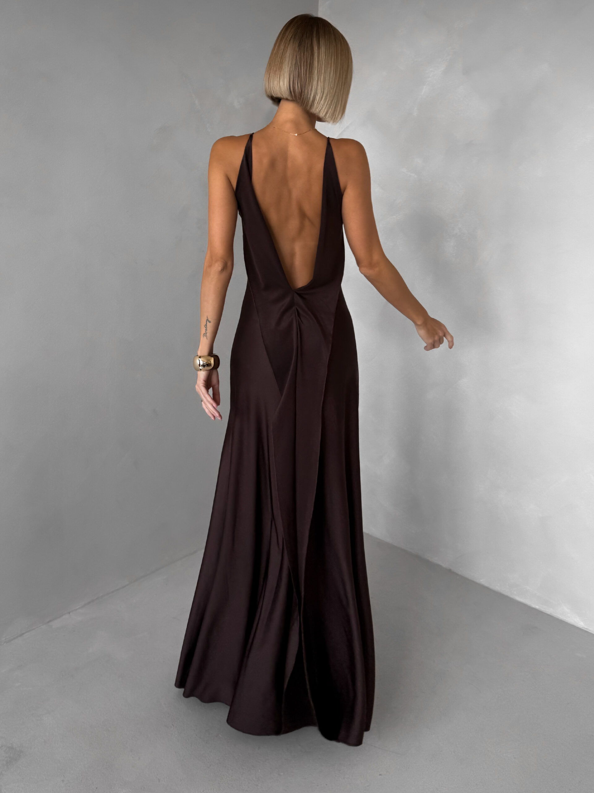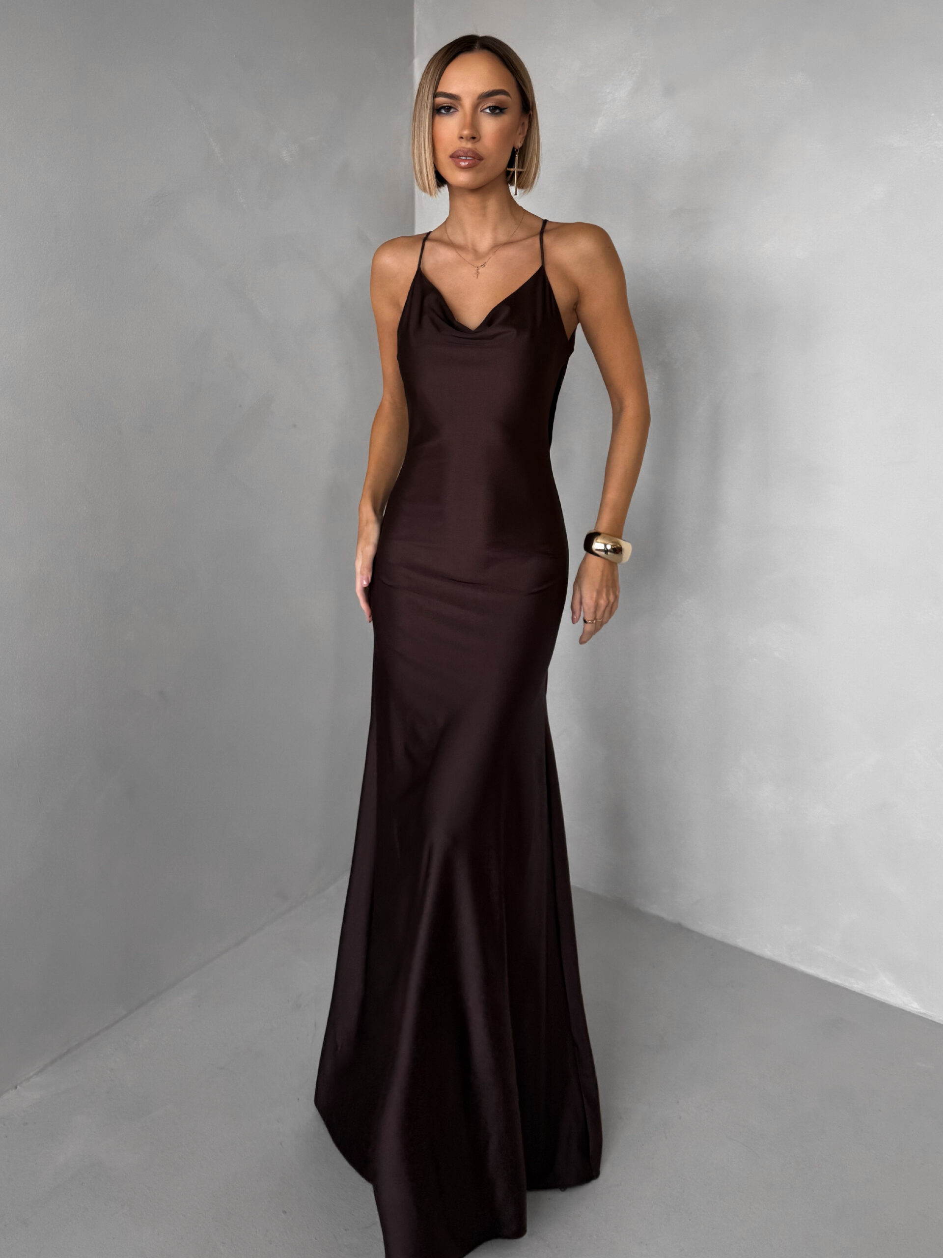 Hnědé společenské jednoduché dlouhé šaty CARMIYA Velikost: ONESIZE