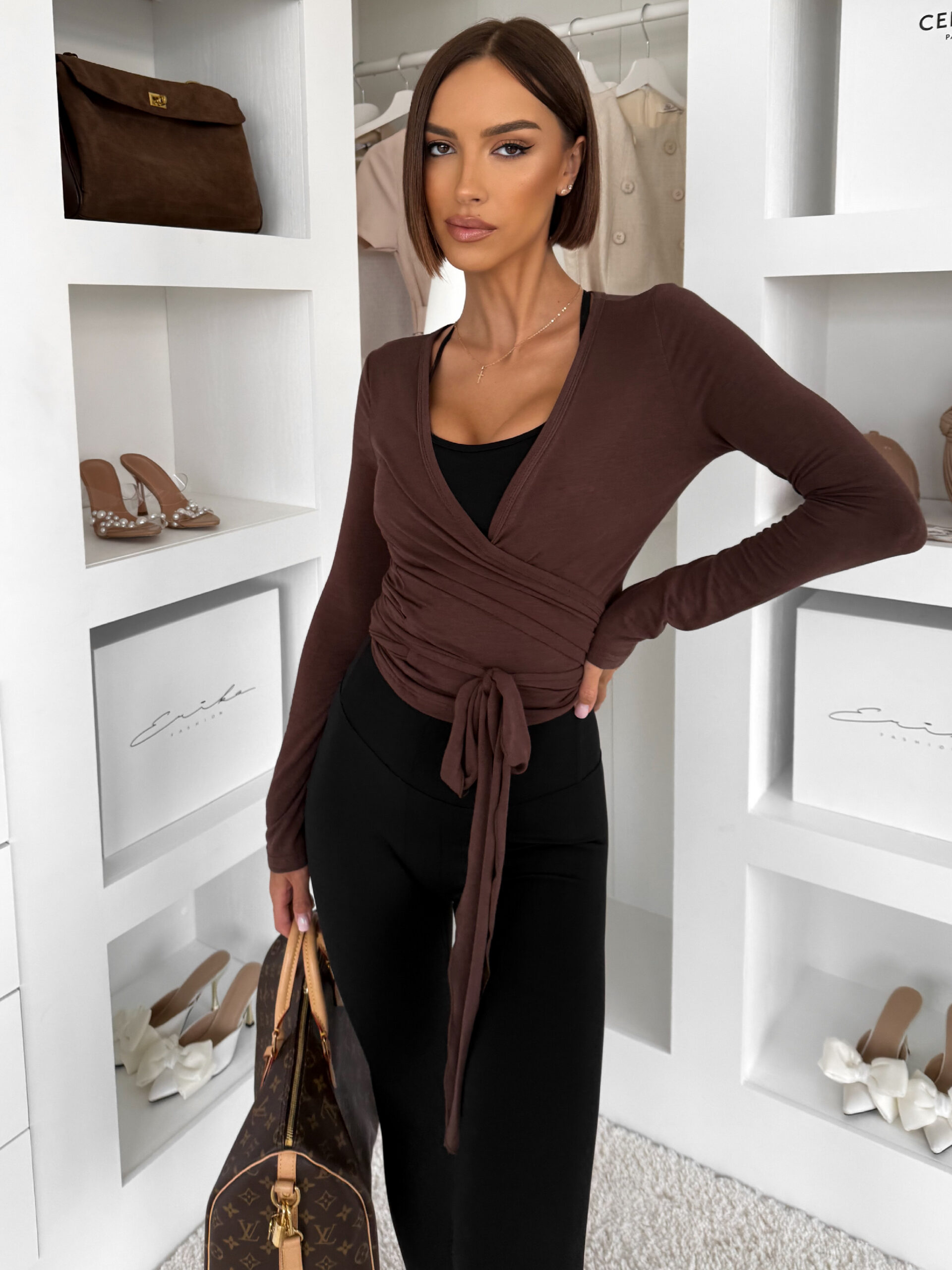 Hnědý zavinovací jóga top NYTHOS Velikost: M/L