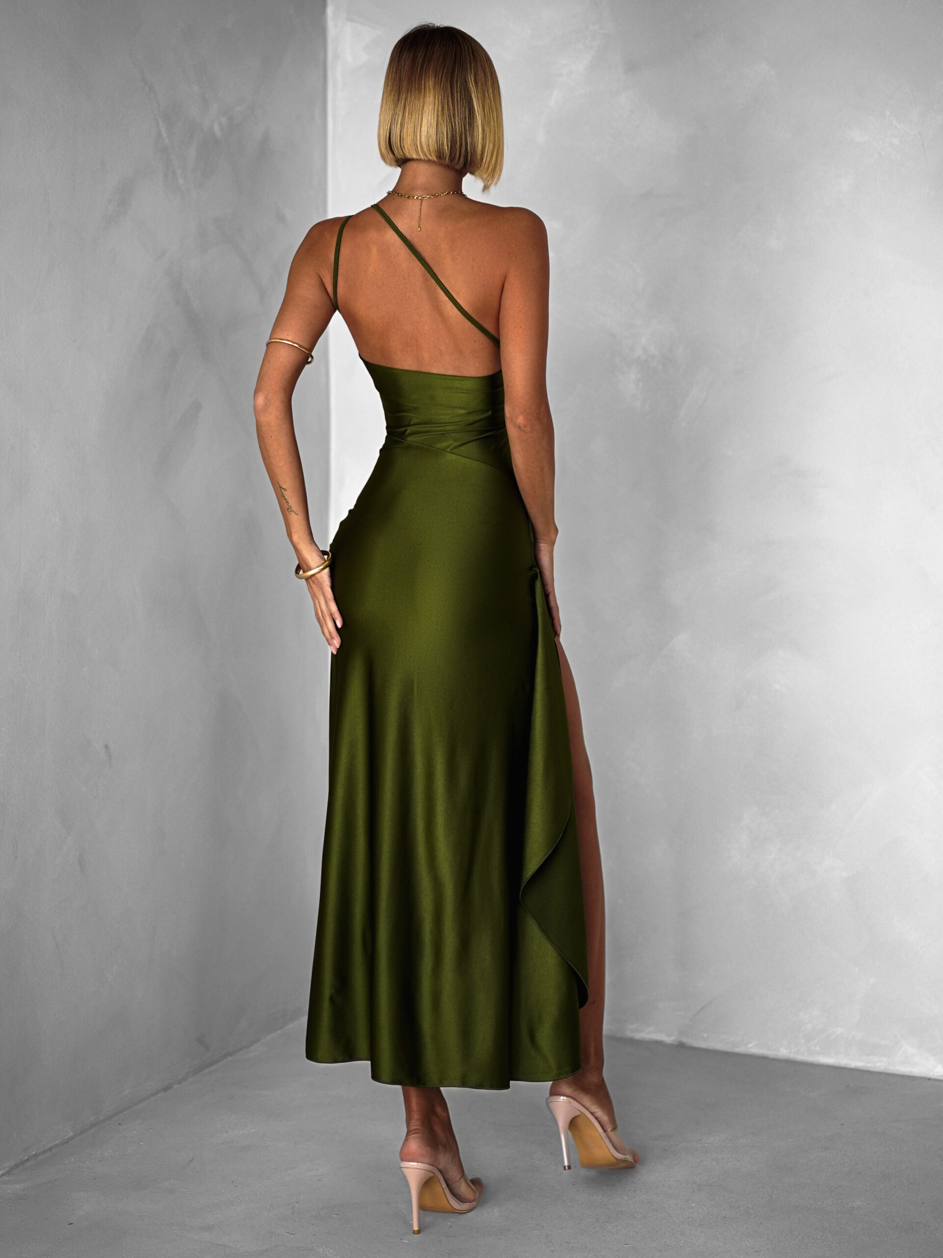 Khaki dlouhé šaty ARWEN na jedno rameno Velikost: ONESIZE
