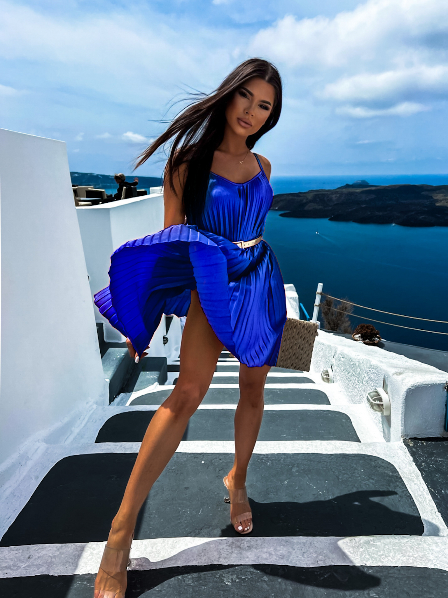 Královsky modré lesklé plisované šaty CLAURA se zlatým páskem Velikost: ONESIZE