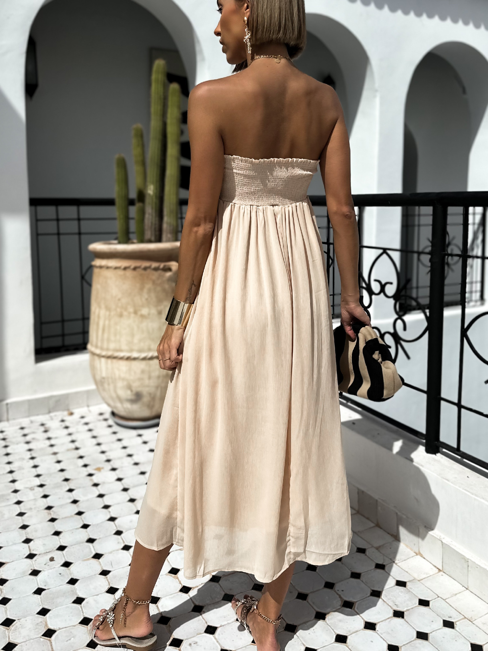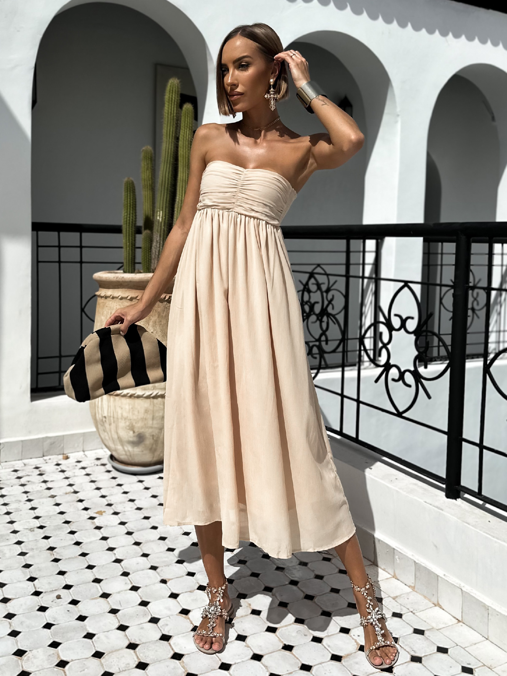 Krémové boho šaty AUTEREL bez rukávů Velikost: ONESIZE