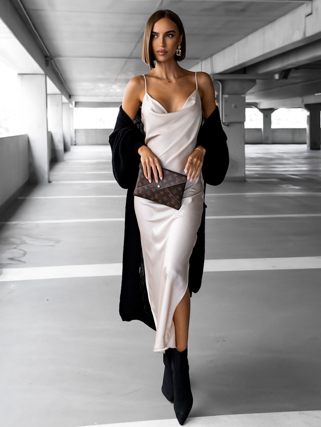 Krémové dlouhé lesklé šaty CLARENCE