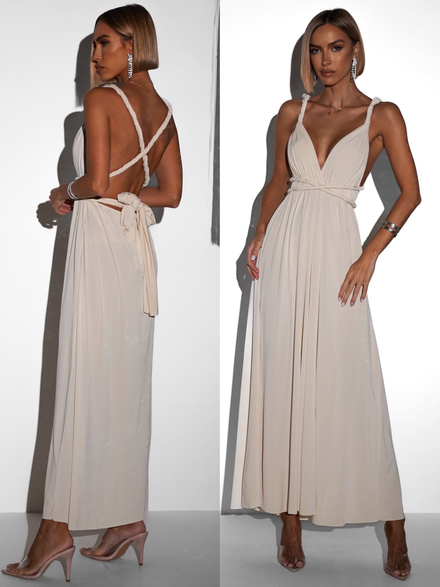 Šaty Beatrice jsou dokonalou volbou na plesy i pro družičky. S elegantním designem a možností variabilního vázání nabízejí nejen perfektní padnutí, ale také jedinečný a půvabný vzhled pro každou příležitost.