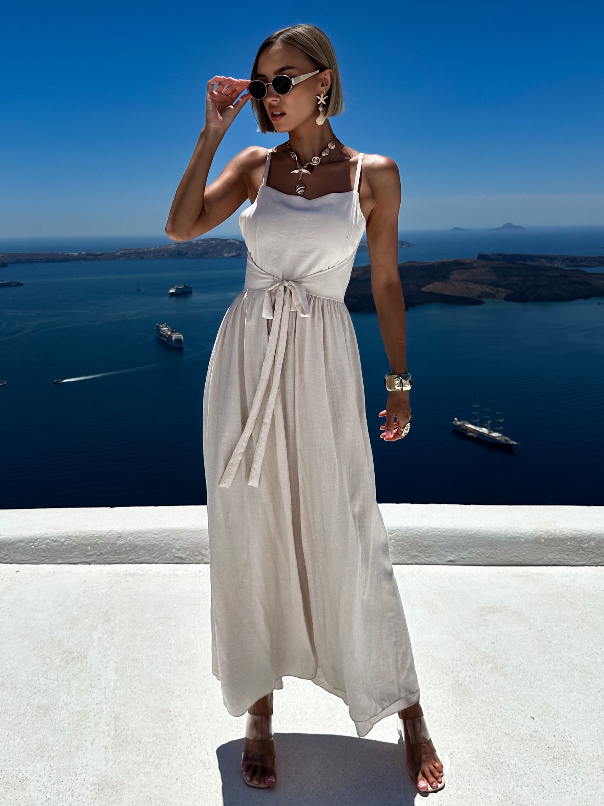 Krémové letní šaty CHEETACH se zavazováním Velikost: ONESIZE