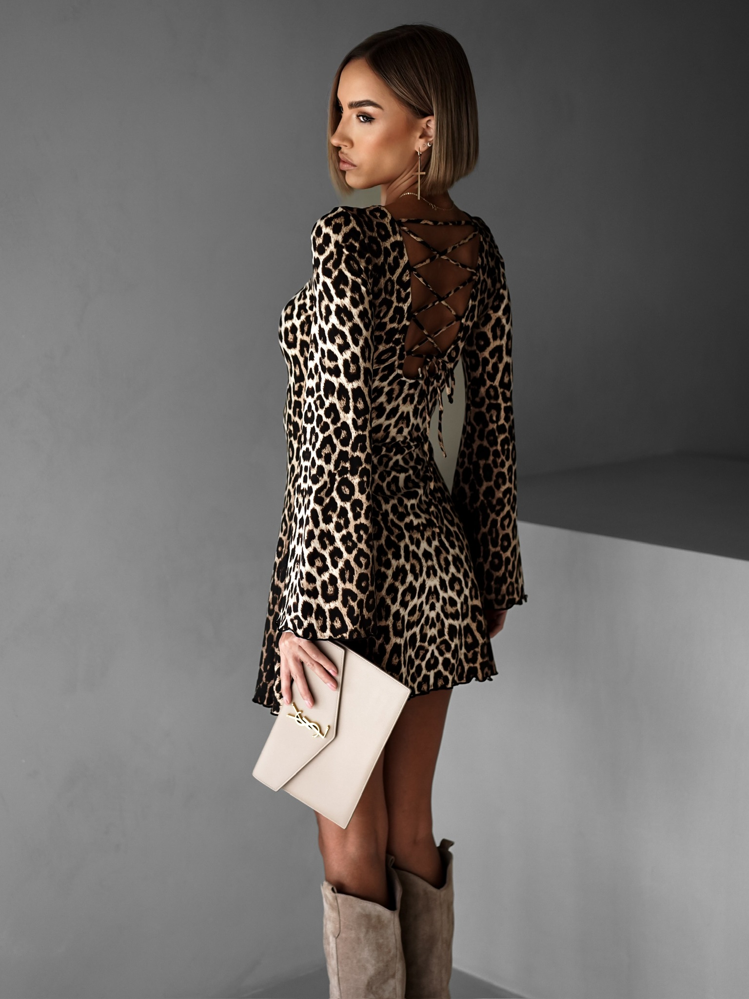 Leopardí krátké šaty AGNETA s dlouhým rukávem Velikost: S/M