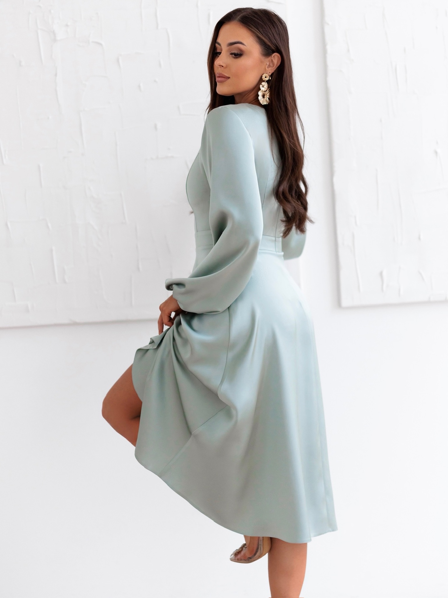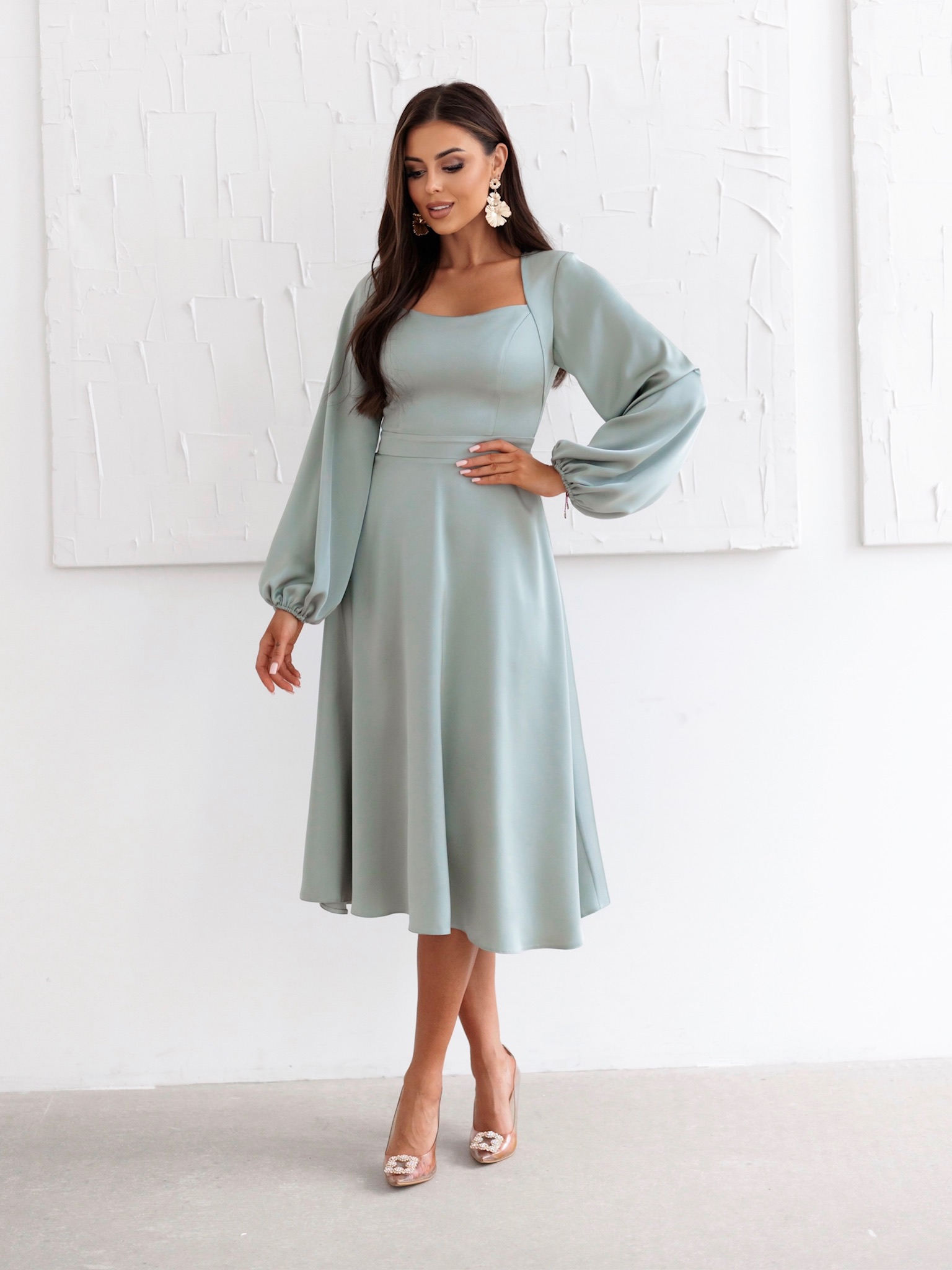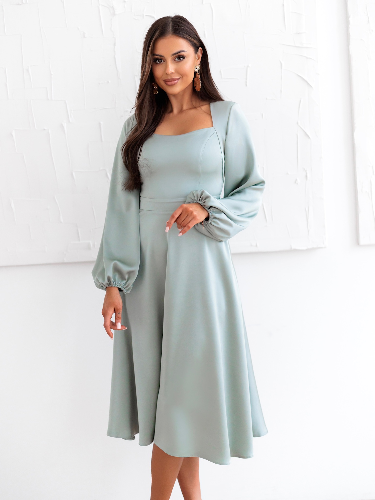 Mintové elegantní midi šaty NORALYN Velikost: XL